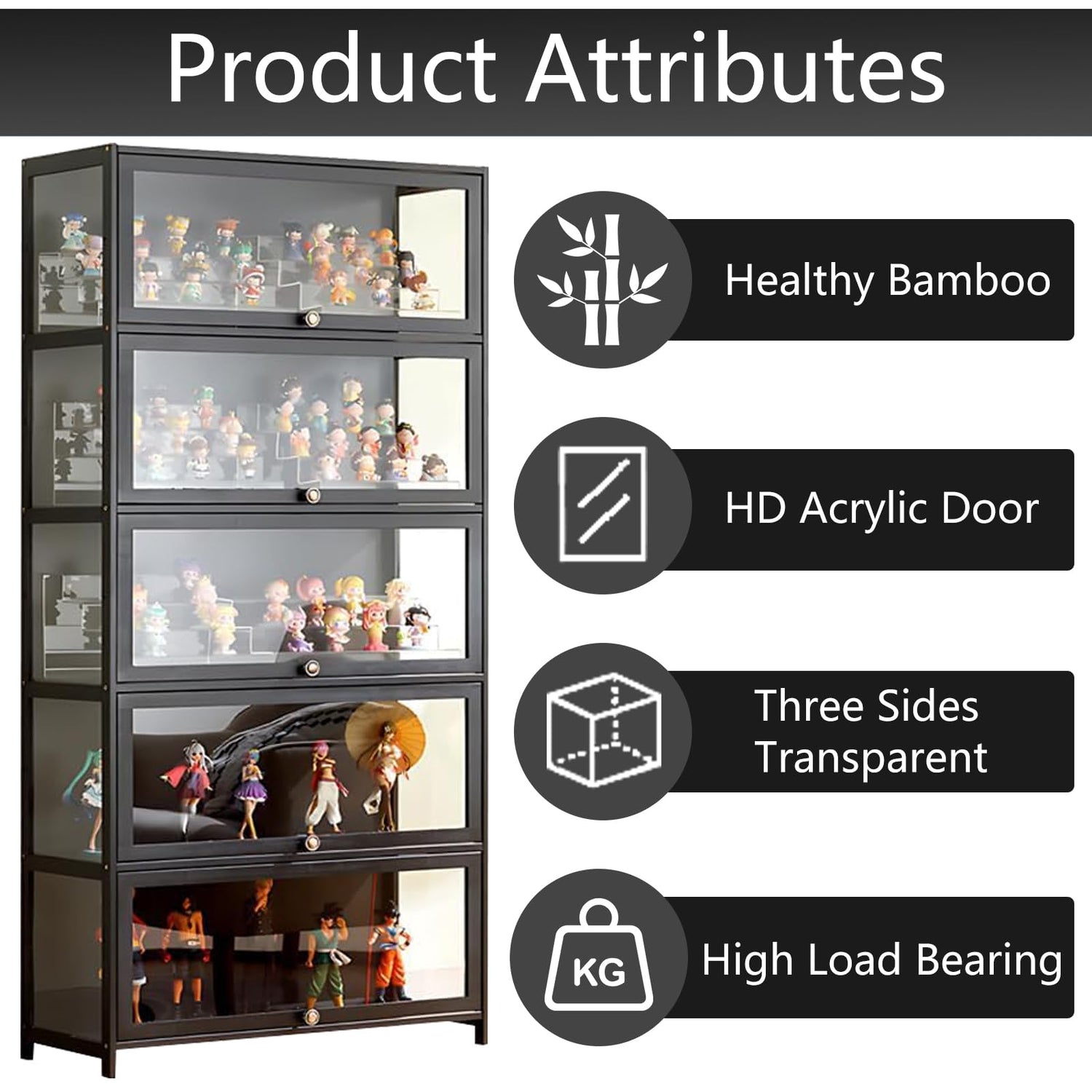 - 【High Quality Materials】- Display case is made of acrylic door and bamboo frame, Clear Display Cabinet ensuring a clear, unhindered perspective of the items displayed inside, moisture-proof by closing the door and can used as curio cabinet to display your collection of books or fine crafts.