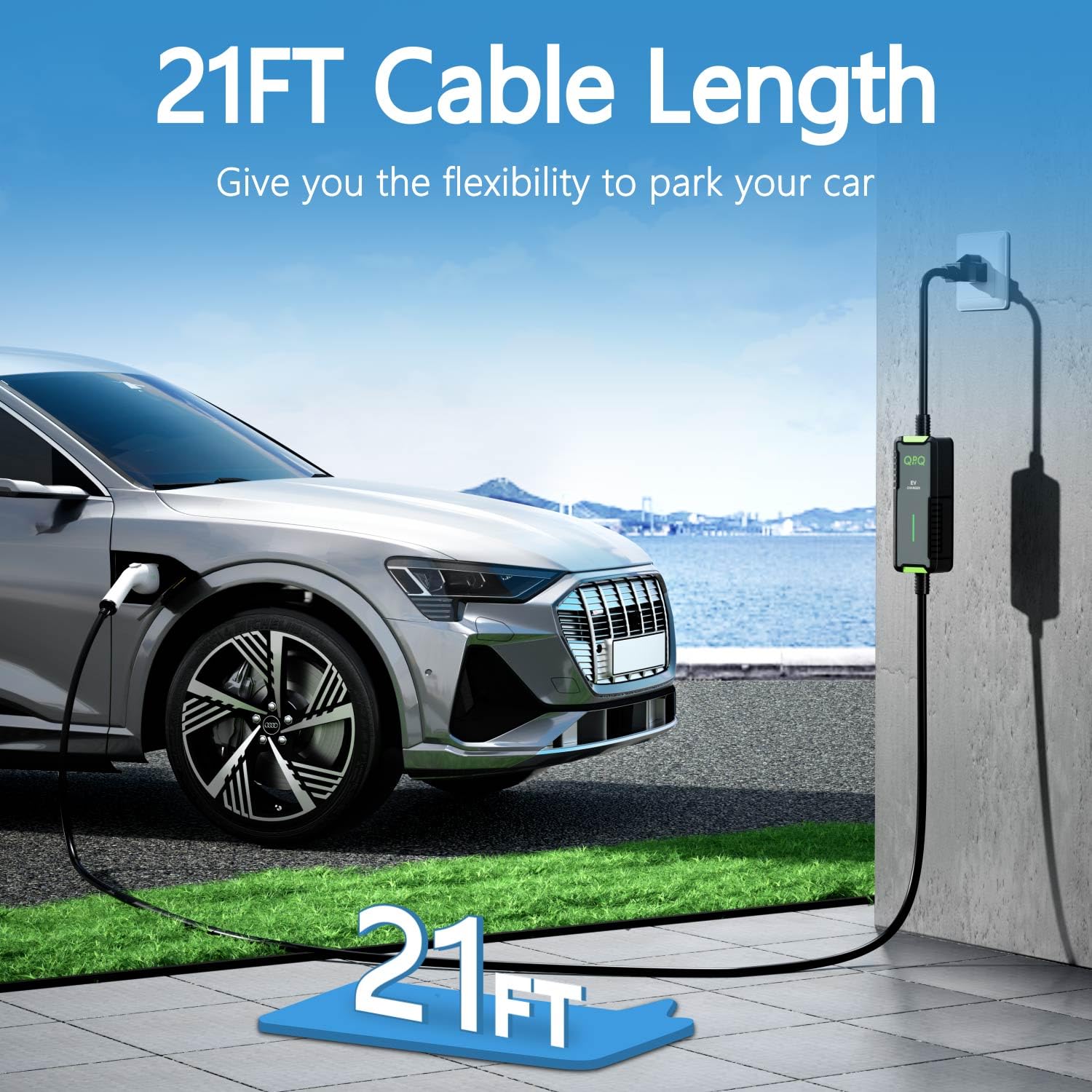- Charge Anytime, Anywhere: The portable electric car charger comes with a 21FT cable which fulfill most demands of charging in driveways and garages. This EV charger comes with a replaceable NEMA 5-15 adapter and can also be used as a Level 1 EV charger. LED indicators help read the charge status and are easily spotted in the dark. A storage bag is included for on-the-go charging, keeping everything organized