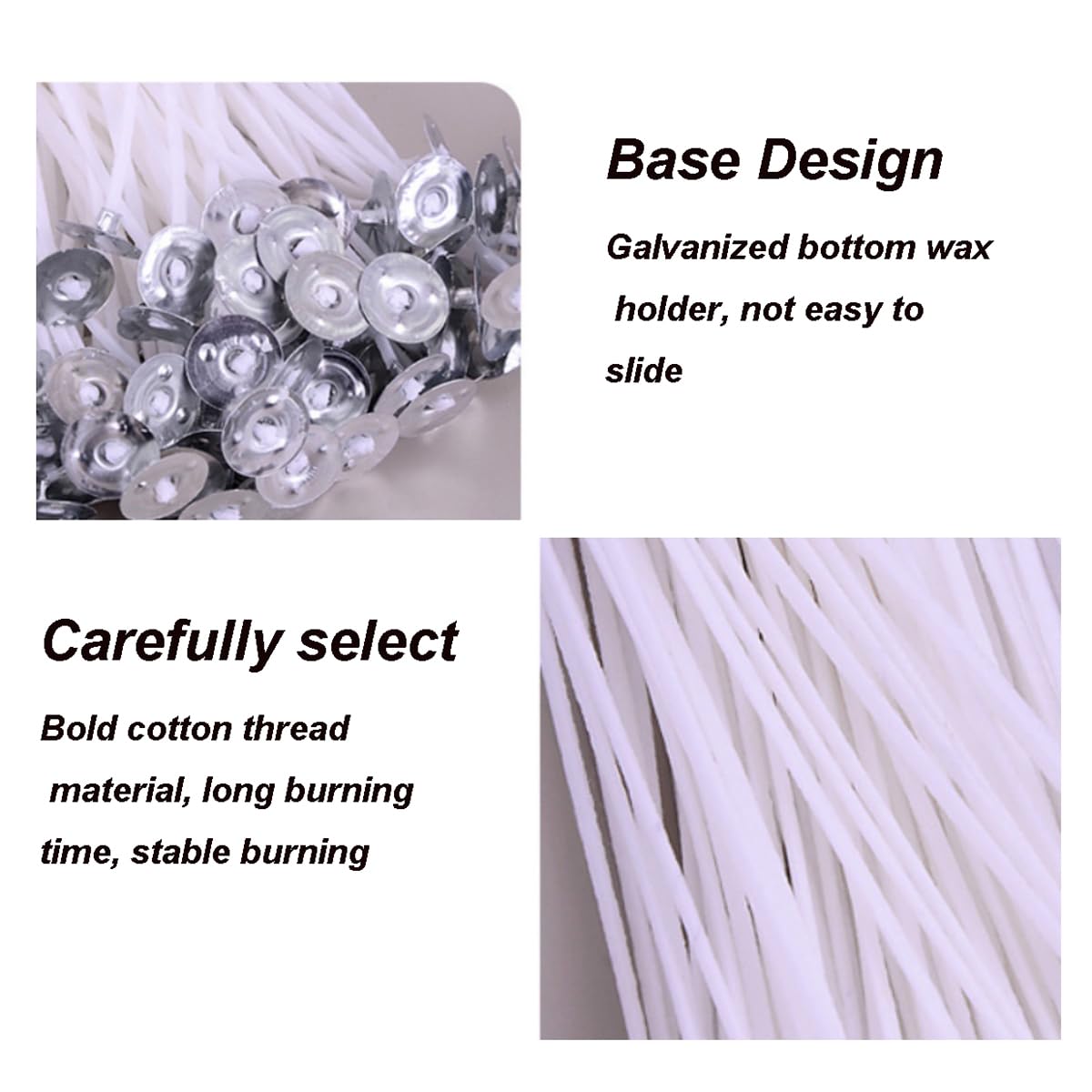 - THE SET CONTAINS:The Candle Making Kit Includes 100Pcs 21Ply Pre-Waxed Cottton Candle Wicks with Tabs,50Pcs Wooden Candle Wicks with 50Pcs Metal Based Holders,Meeting Your Different Needs