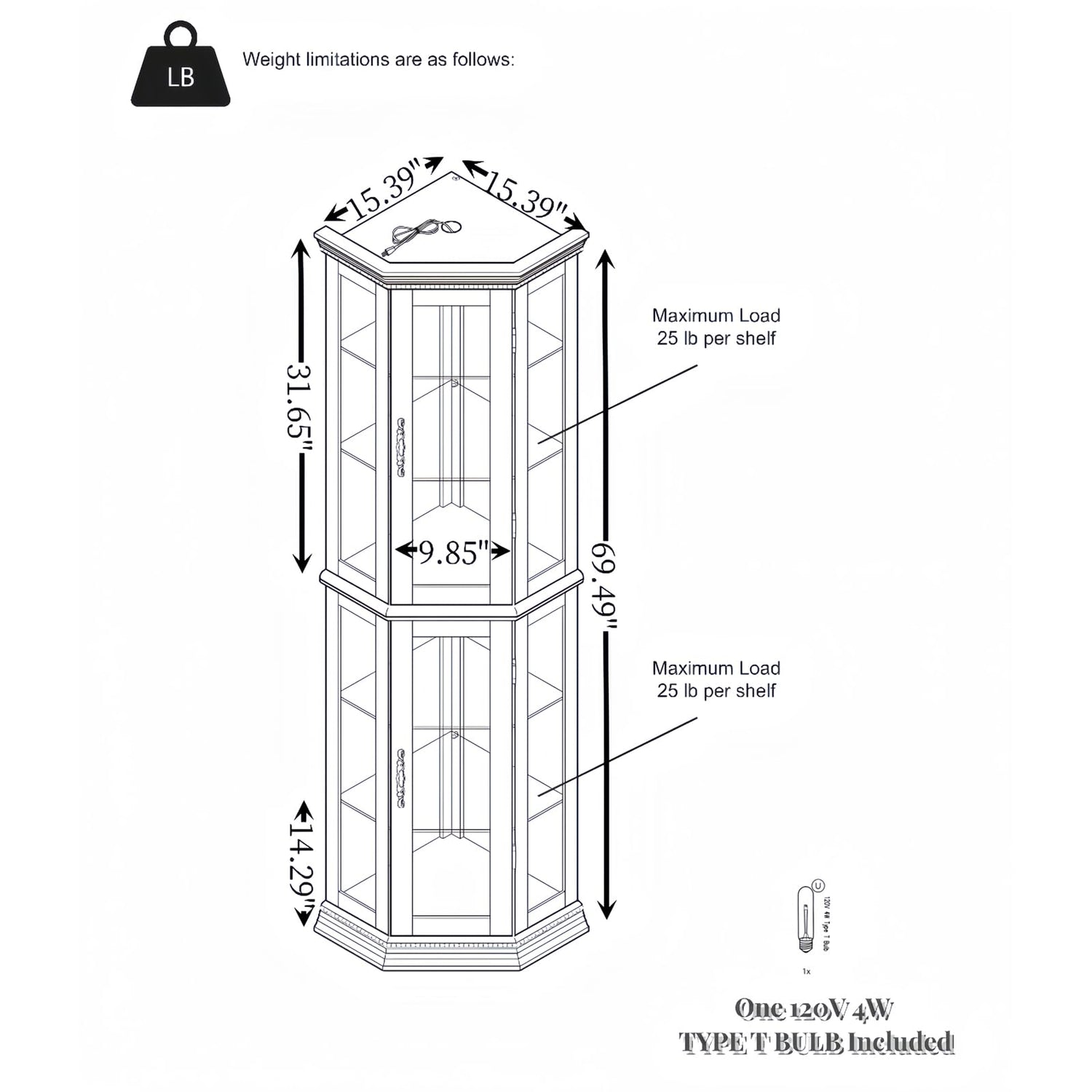 - NATURAL CLASSIC DESIGN - A versatile piece, this corner curio cabinet is not only a perfect way to showcase your valuables but also an excellent choice for bringing life to vacant corner spaces. Its smooth arched contours and pleasing design elements soften and enhance the ambiance of your interior decor, creating a gentle yet captivating focal point within the room.