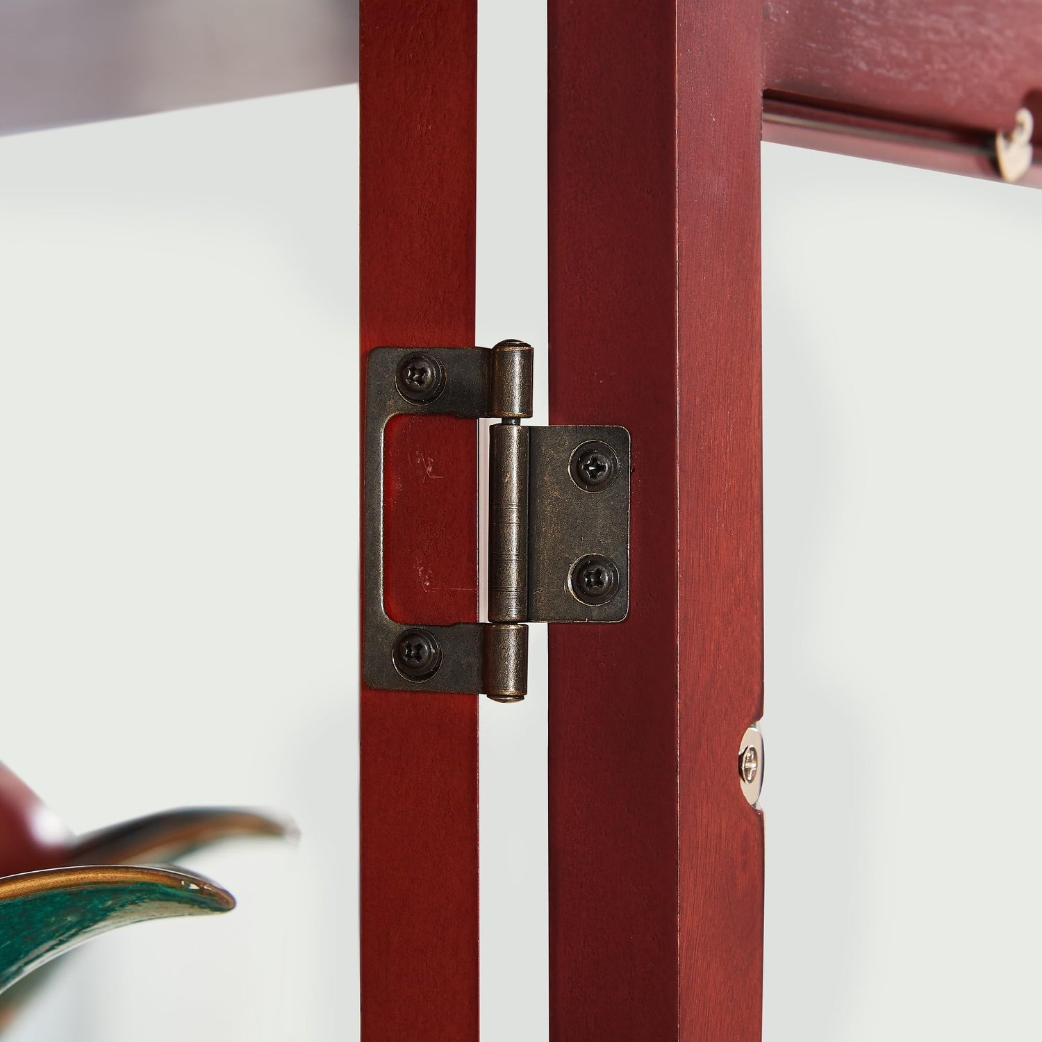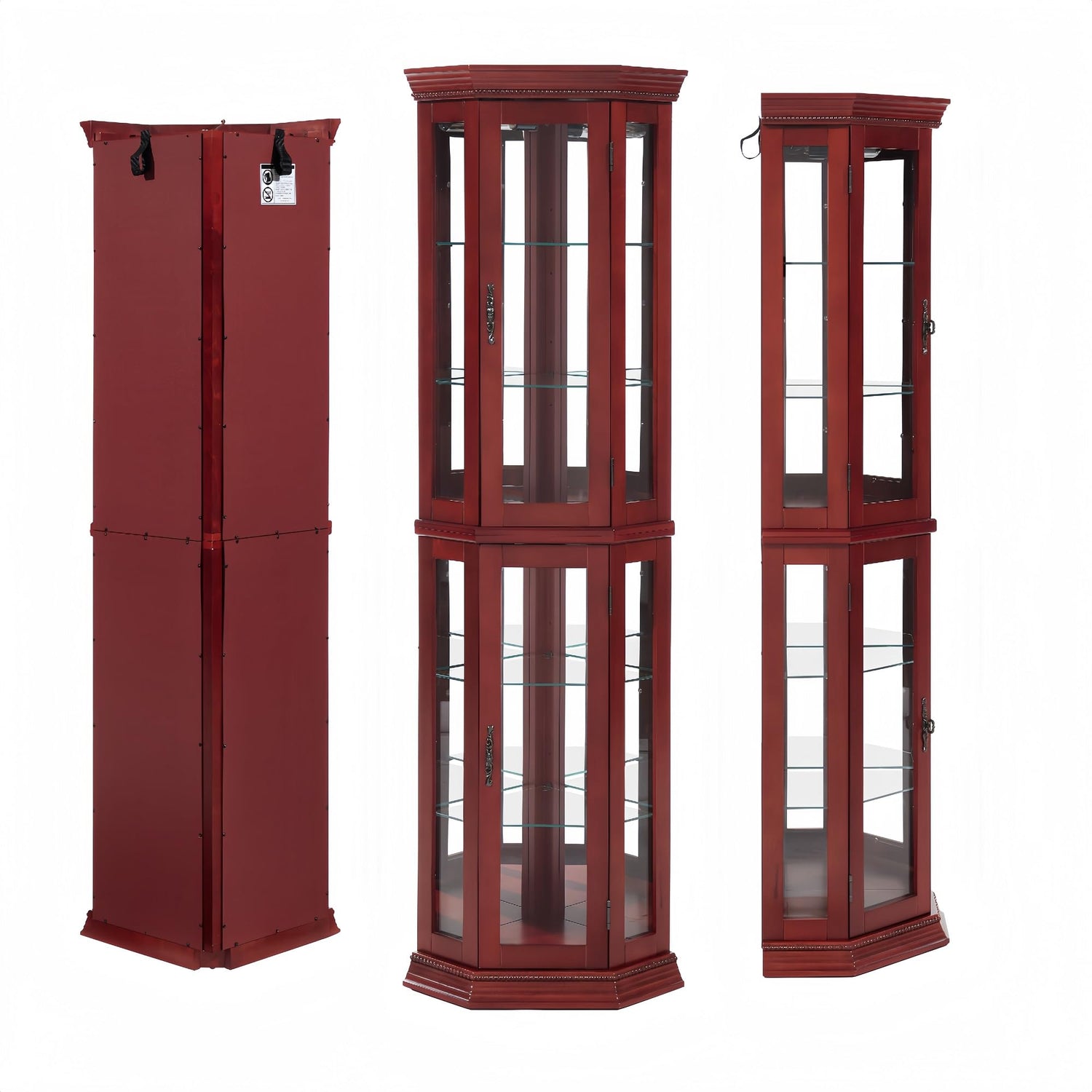 - PERFECT SIZE - Crafted from premium wood materials, this curio cabinet boasts a slim profile, saving space while standing sturdily in any corner of your home. Classic carved accents and decorative brass handles create a striking contrast we all adore.