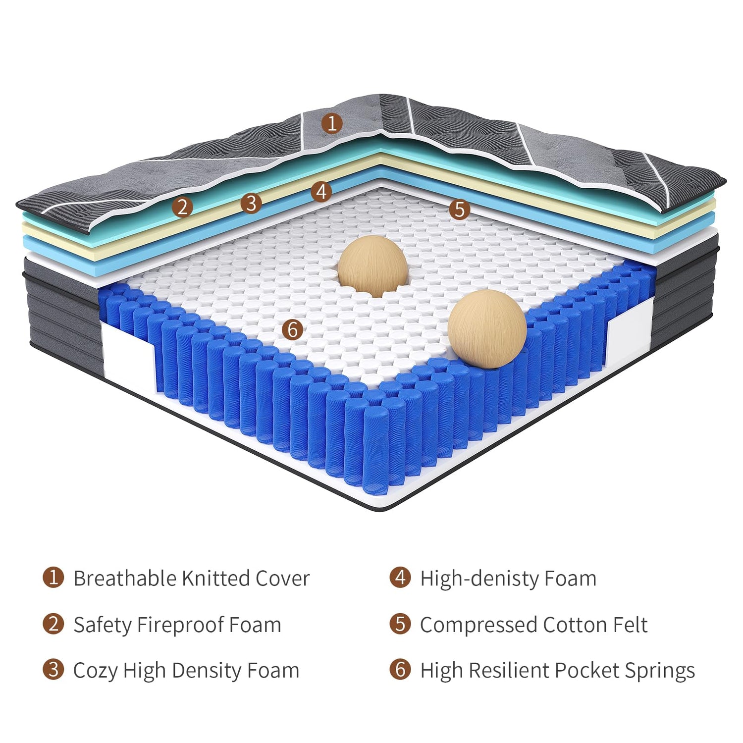 - COMFORTABLE SUPPORT AND SWEET SLEEP:The Full mattress combines individually wrapped pocket springs with premium memory foam to evenly distribute your weight from head to toe. This design relieves pressure points, reduces body fatigue, and alleviates aches and pains, ensuring a deeper, more restful sleep and significantly improving your overall sleep quality.