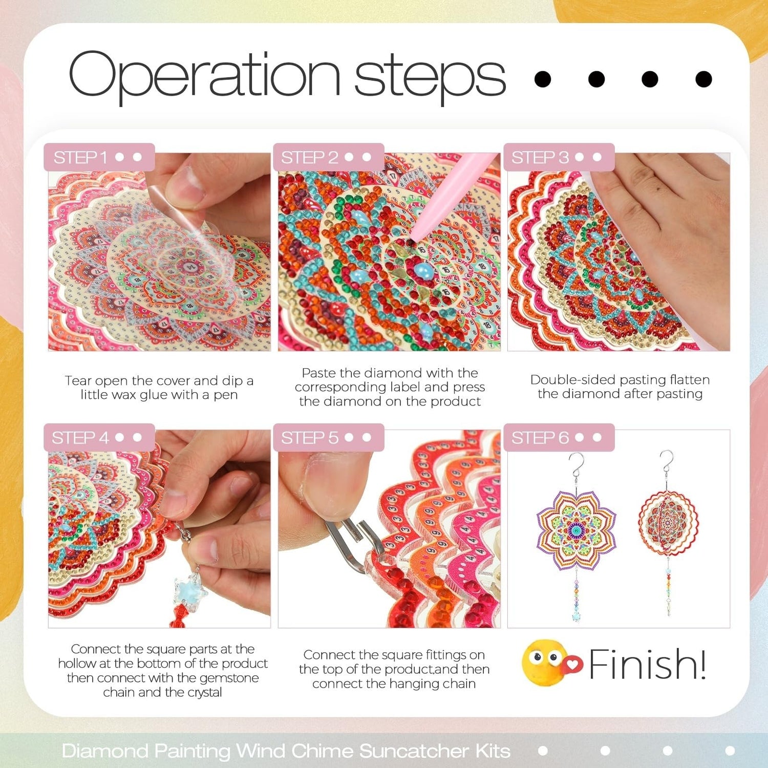 - Nice for Your DIY: the diamond art suncatcher is equipped with many tools, you just need to put the labeled diamond in the corresponding number position, then you can finish your own wind chime, letting you enjoy a fun DIY time