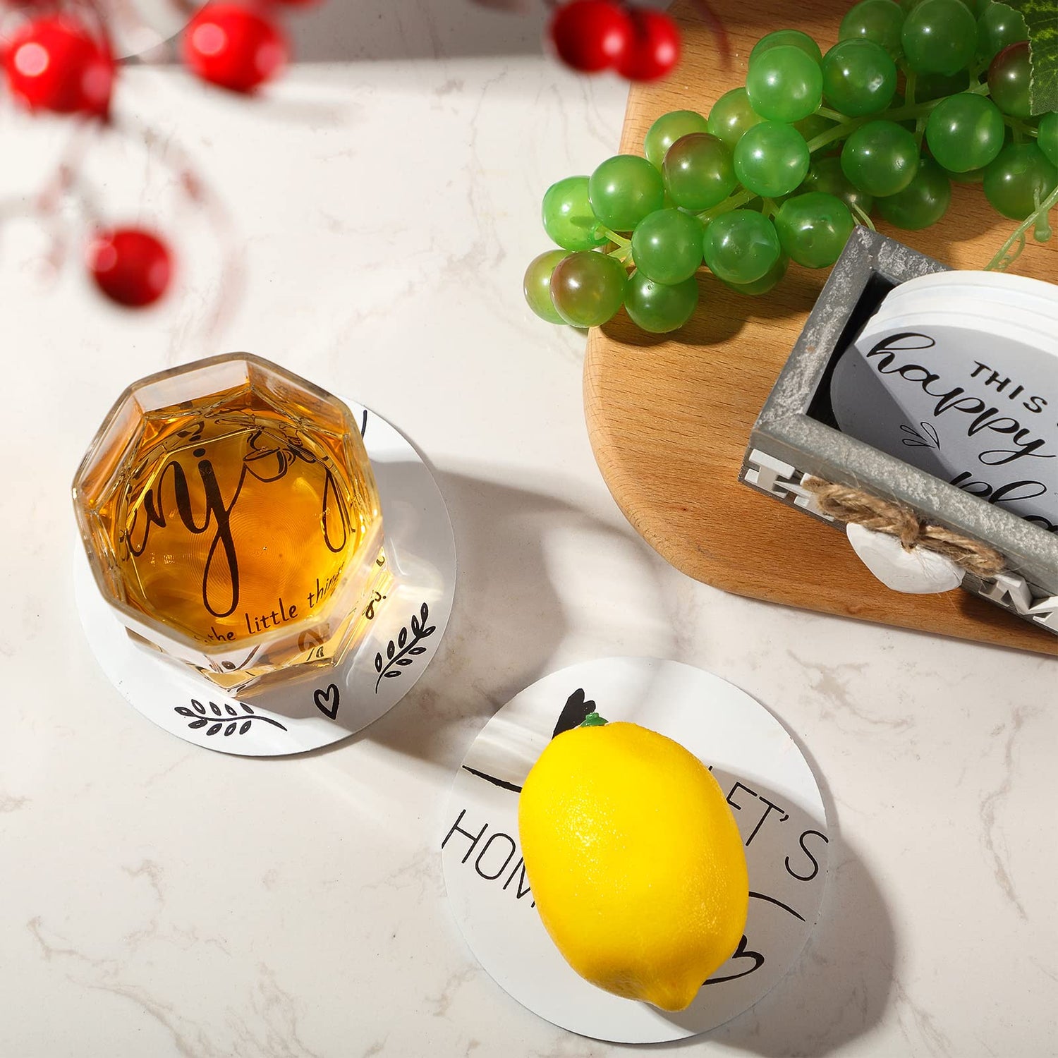 These housewarming coasters are printed with various warm saying on the solid color background, which are simple and elegant, nice for home decor and add a sense of farmhouse style.
