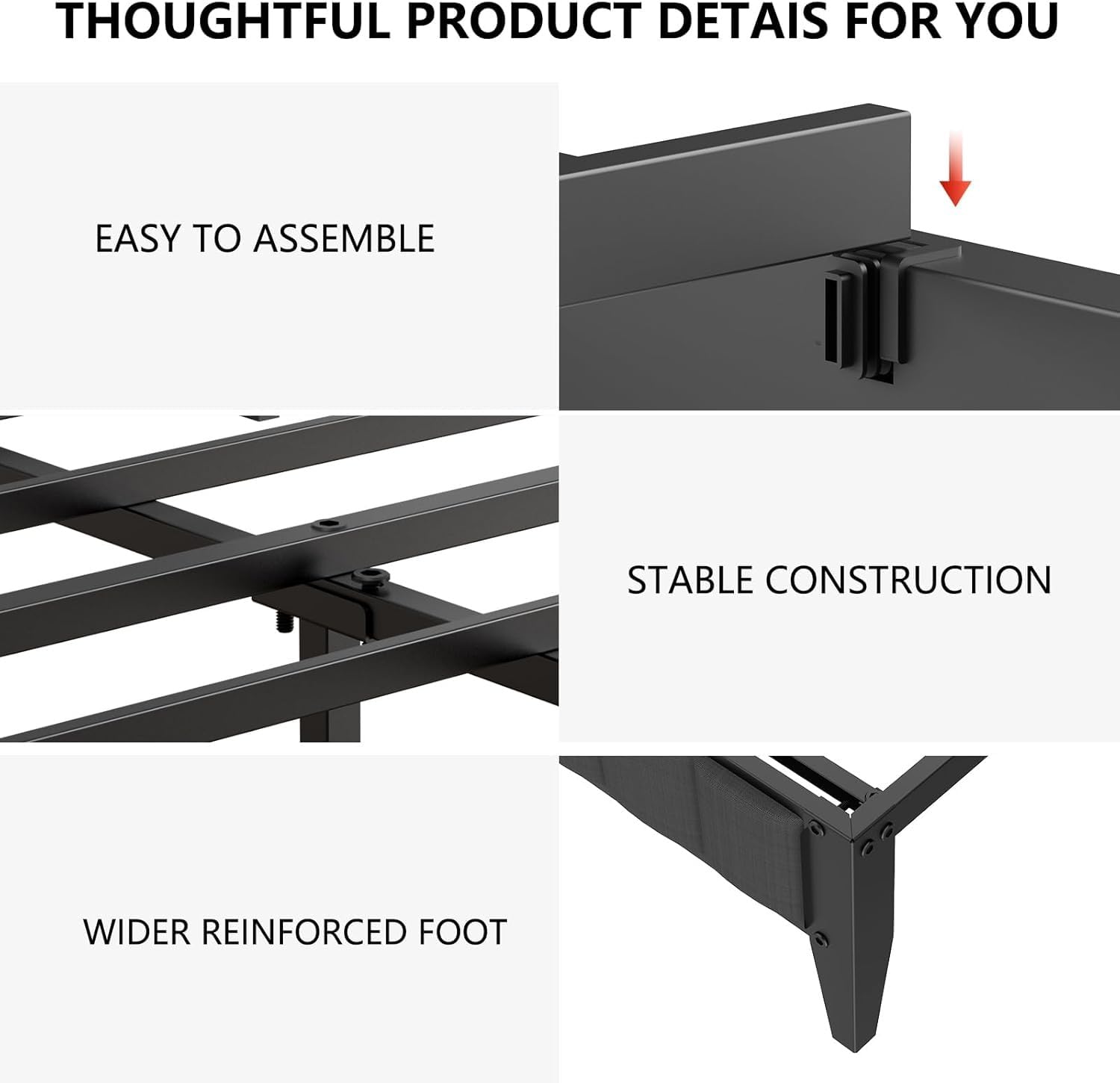 - Noise Free : Our queen size bed frame incorporates EVA underlay on the middle beam, reducing friction between metal components so you can enjoy a silent environment for undisturbed sleep.