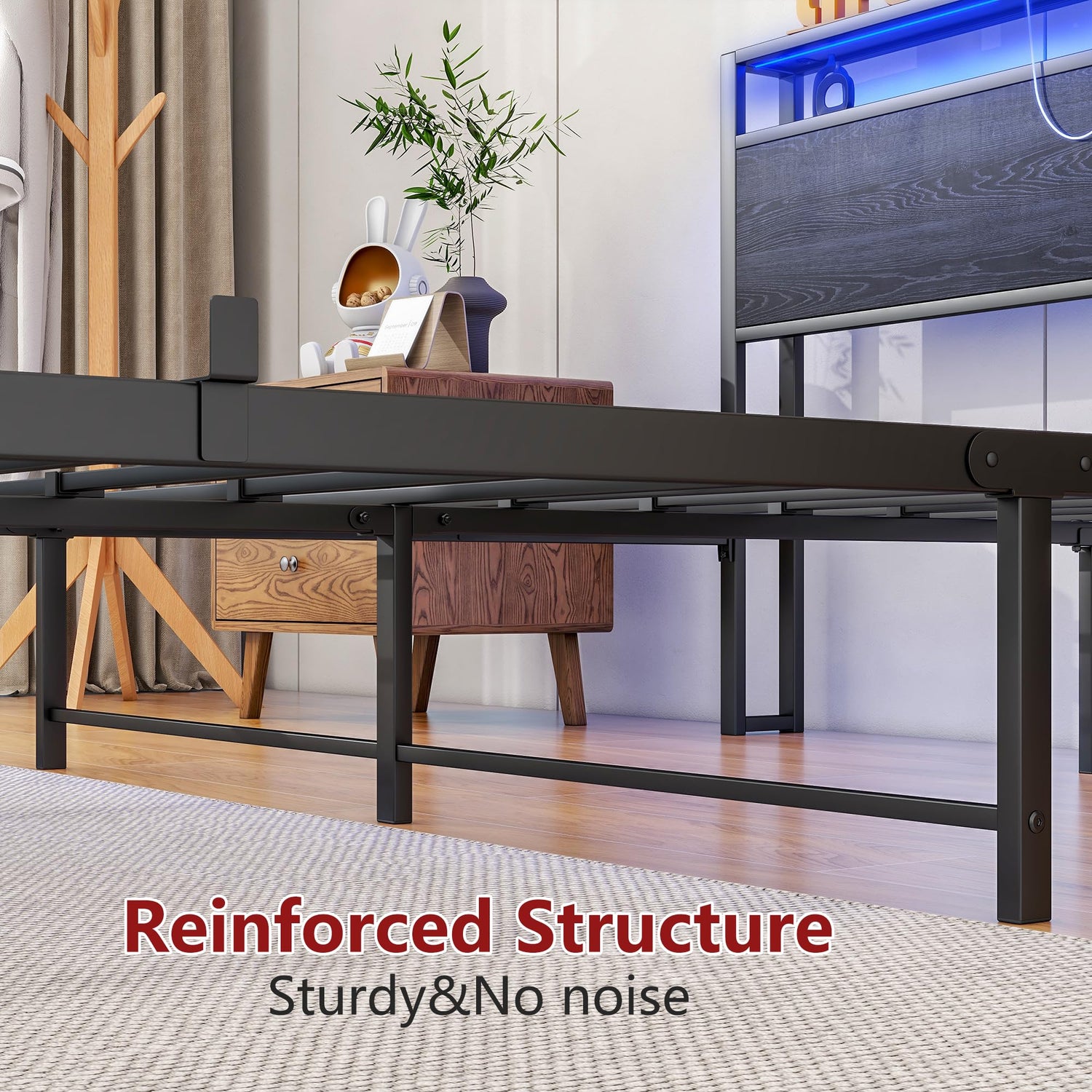Queen Bed Frame with Storage Headboard/LED Lights,Metal Platform Bed Frame Queen Size with Storage Charging Station,Queen Bed Frame No Box Spring Needed,Heavy Duty Metal Slats,Bed Base,No Noise,Black