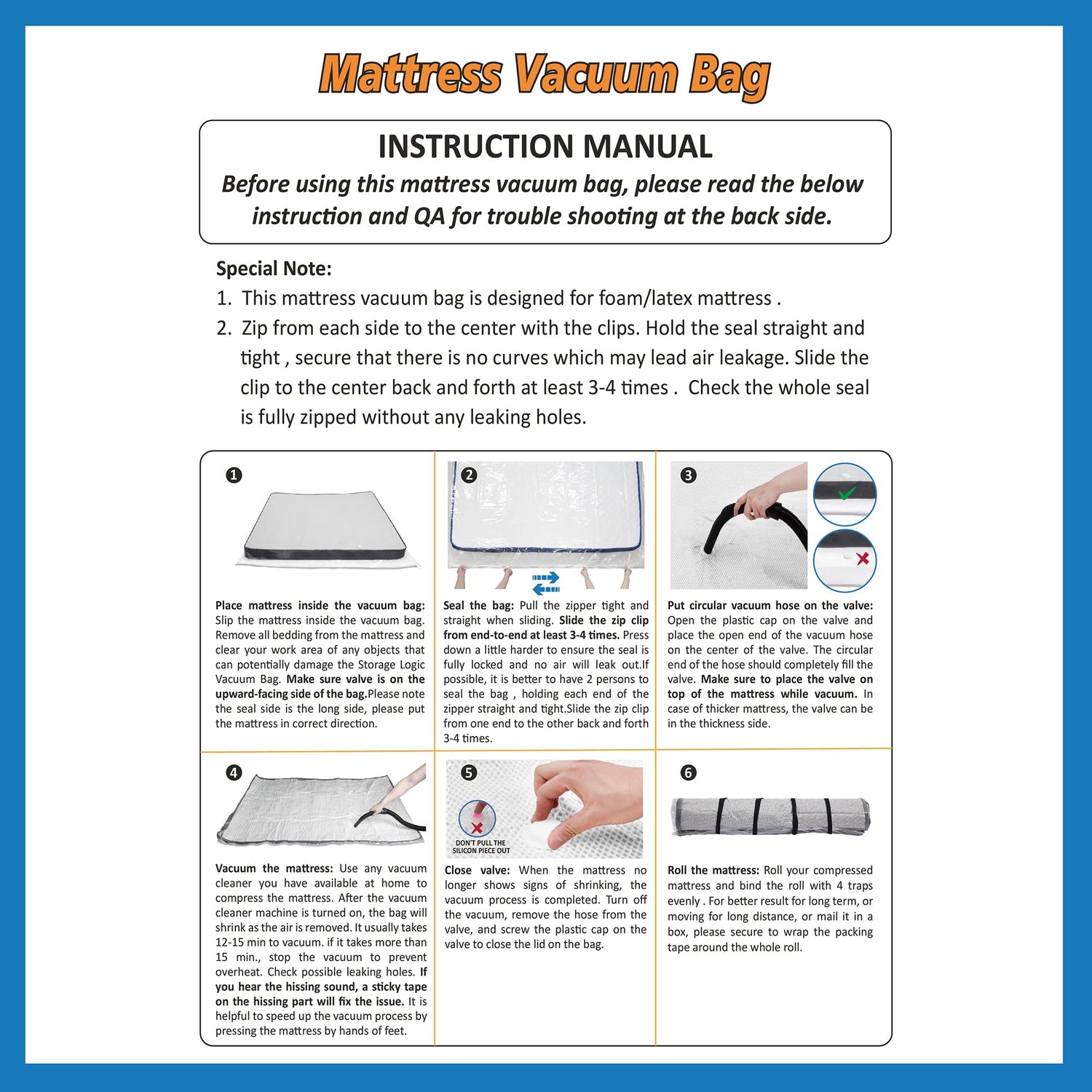 - No More Hassle Moving Mattress: Our vacuum mattress bag is a must-have packing supply for mattress transportation and storage. You can vacuum and move mattresses just by yourself. With our mattress bag, moving mattress is no longer a challenge.