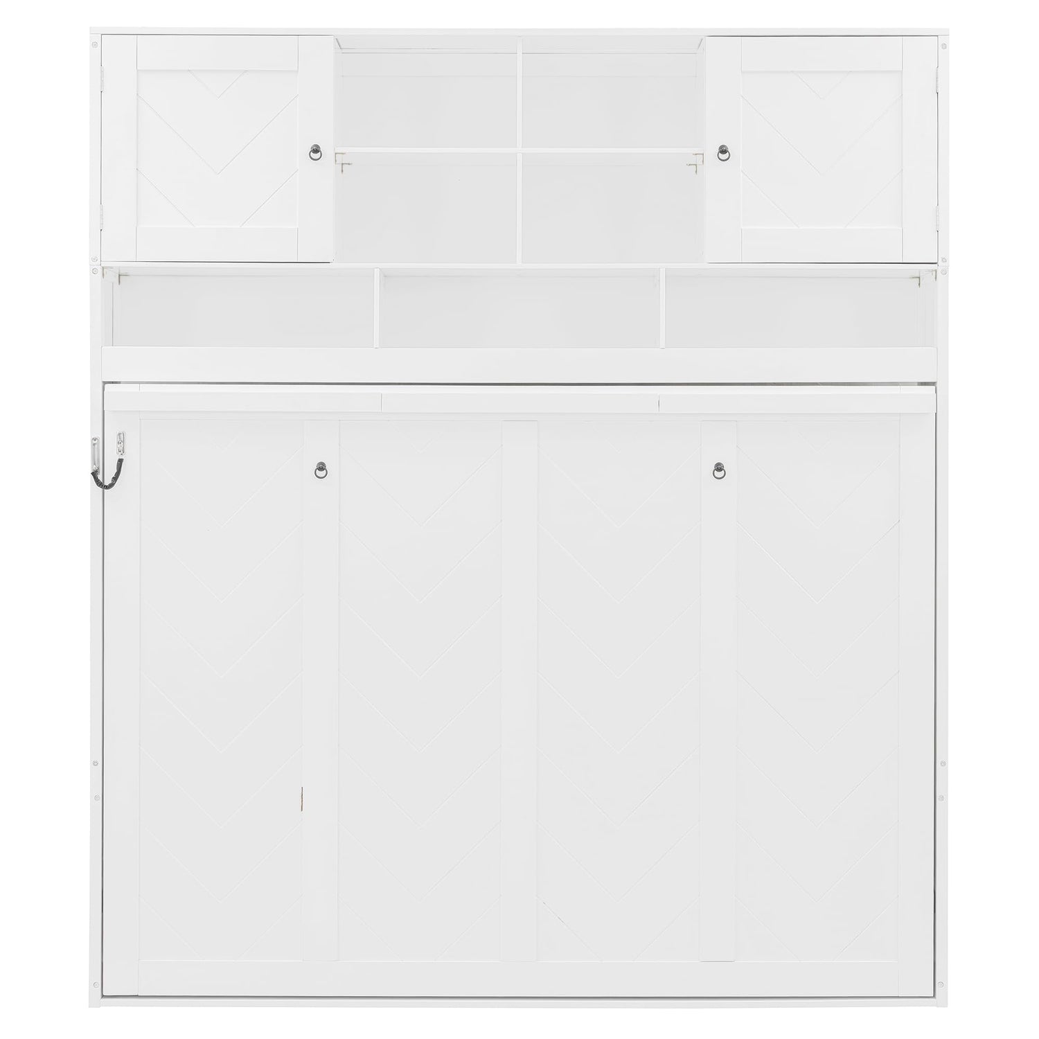 Queen Horizontal Murphy Bed with Storage Shelves,Wood Folding Hideaway Murphy Wall Bed with Storage Bookcase for Adults (B White)