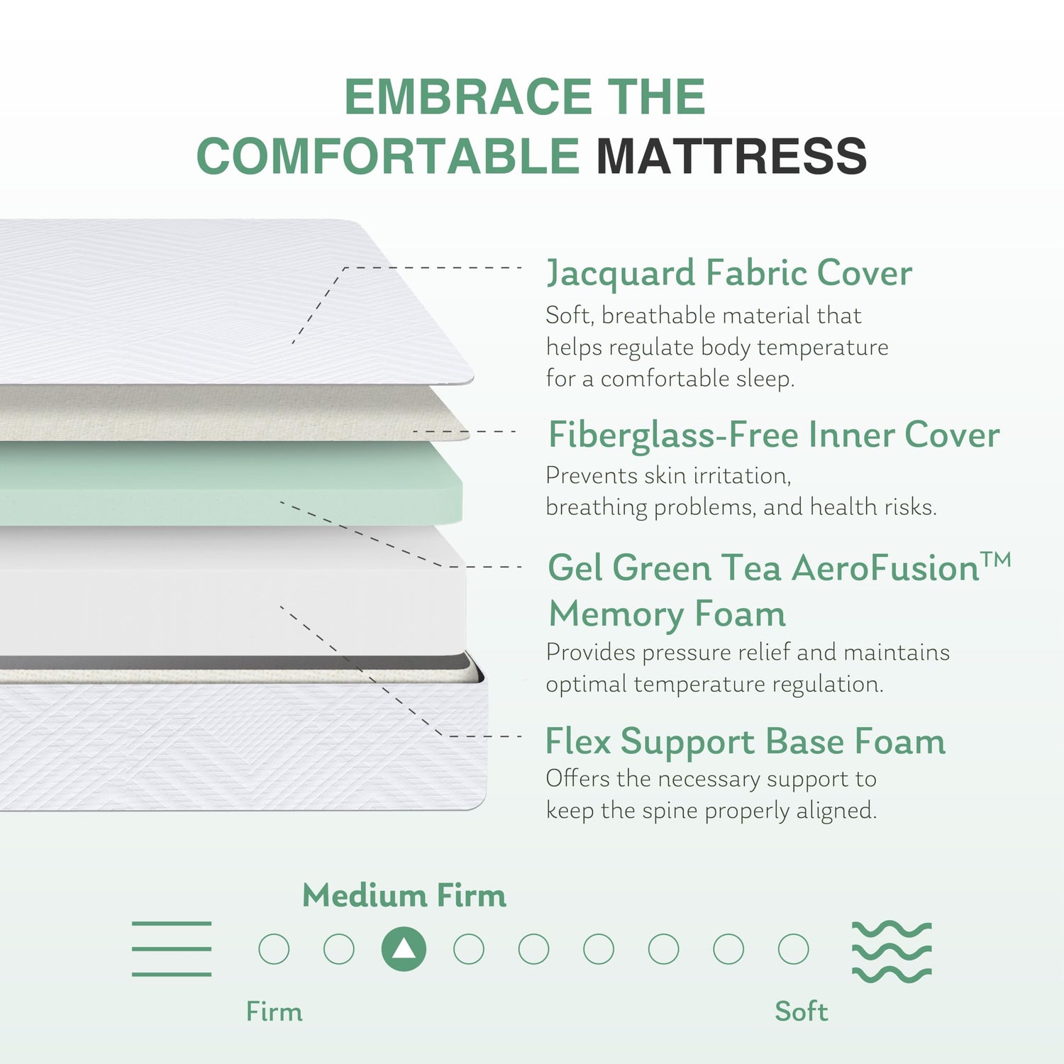 Queen Mattress in a Box, 8 inch Mattresses for Platform Bed Double Size Daybed, Green Tea Memory Foam Medium Firm