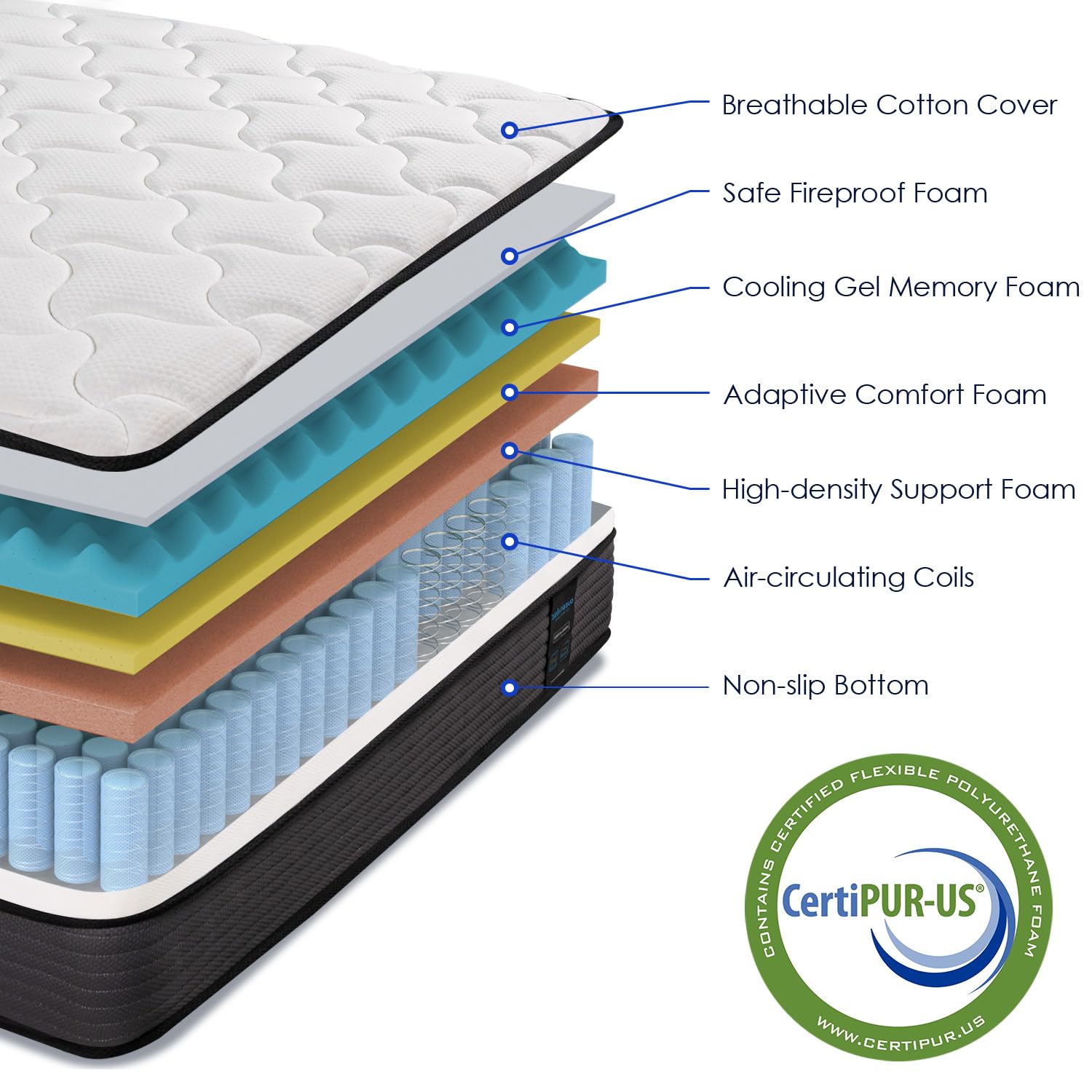 - 【Breathable Materials Dissipate Heat & Sweat】The pillowtop of our 10-inch king mattress is combined with breathable cotton fabric, a gel-infused memory foam that releases cool element to refresh the contact surface between you and the mattress. The unique pocket coil system enhances circulation. Plush, skin-friendly, sweat-wicking specialty make it ideal for kids, pregnant women and people tend to feel hot during sleep