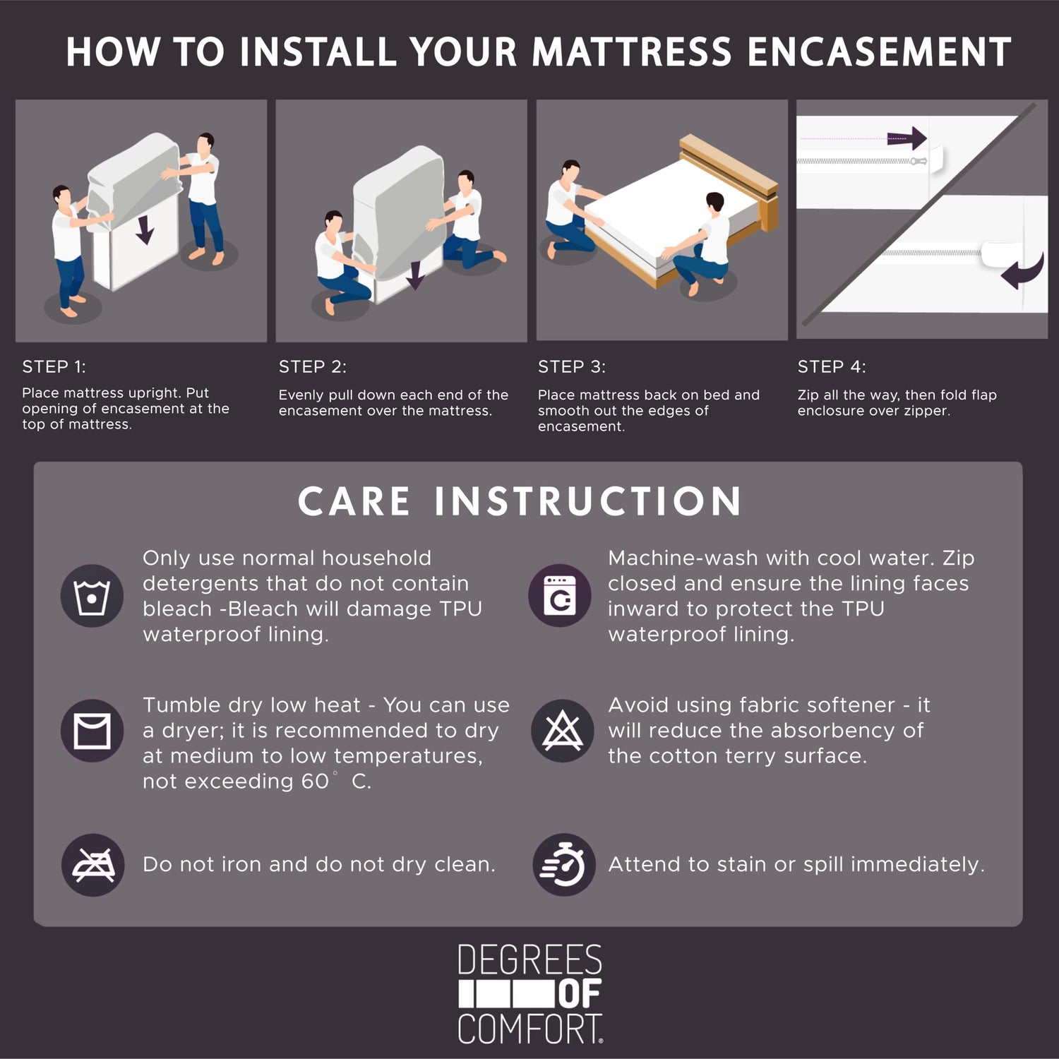 - DURABLE & EASY TO CLEAN: Crafted from durable polyester, our zippered mattress protector is built to last. Bed bug mattress encasement is machine washable and can be dried on low heat, making it convenient and effortless to keep your bed bug mattress encasement clean and fresh