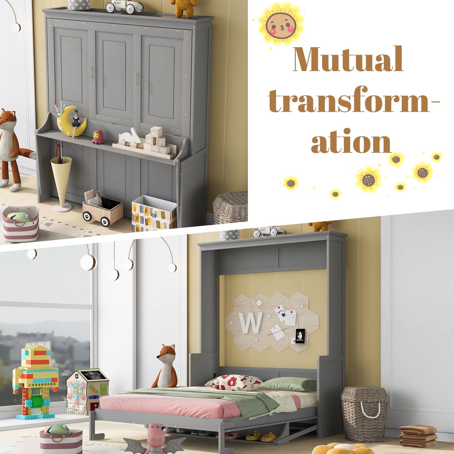 Queen Size Murphy Bed Wall Bed with a Storage Shelf, Space-Saving Wall Bed for Multipurpose Guest Room or Home Office - Gray
