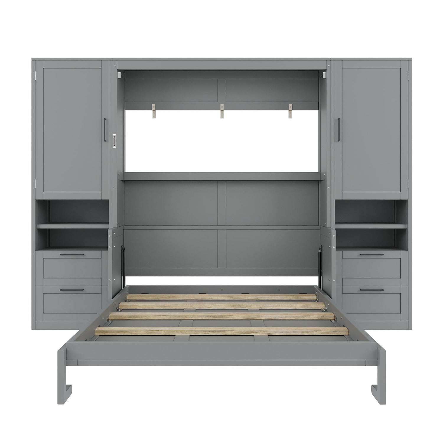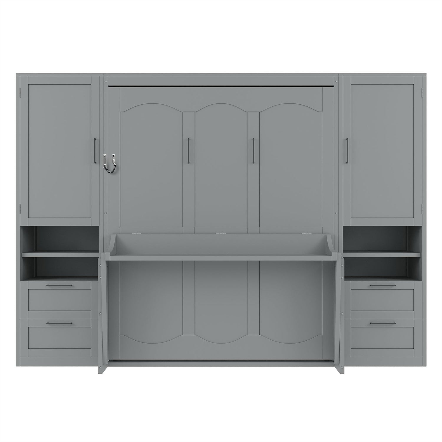 Queen Size Murphy Bed Wall Bed with Desk and Closet,Drawers and Shelves,for Small Spaces Studio Study Office Guest Room Use (Gray#Desk, Queen)