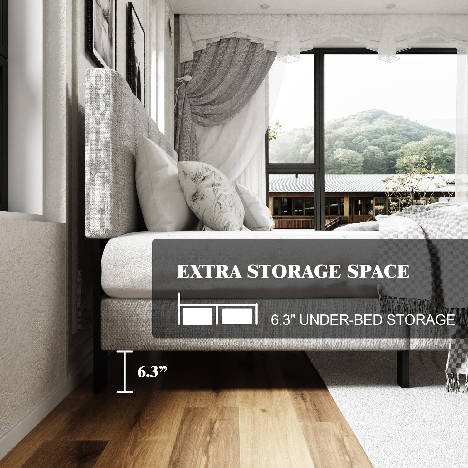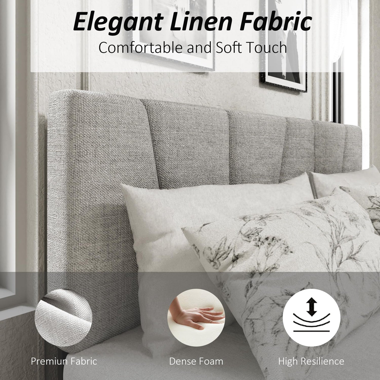 Queen Size Platform Bed Frame with Upholstered Headboard, Wooden Slats Support, Noise Free, No Box Spring Needed, Easy Assembly, Light Grey, Linen