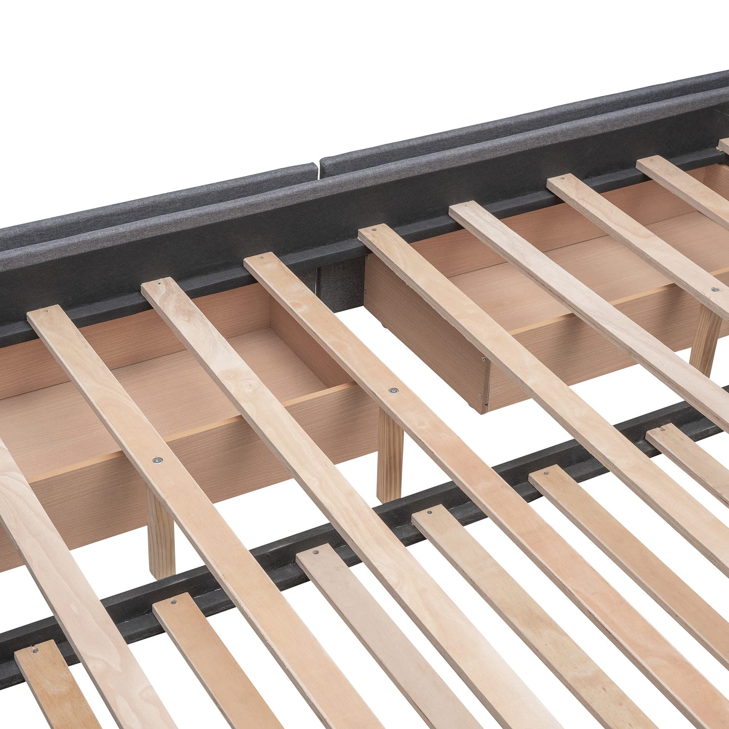 Queen Size Platform Bed, Linen Fabric Upholstered Platform Bed Frame with 2 Storage Drawers and 1 Twin XL Trundle, for Kids/Teen/Adults, Wooden Slats Support (Dark Gray, Linen)