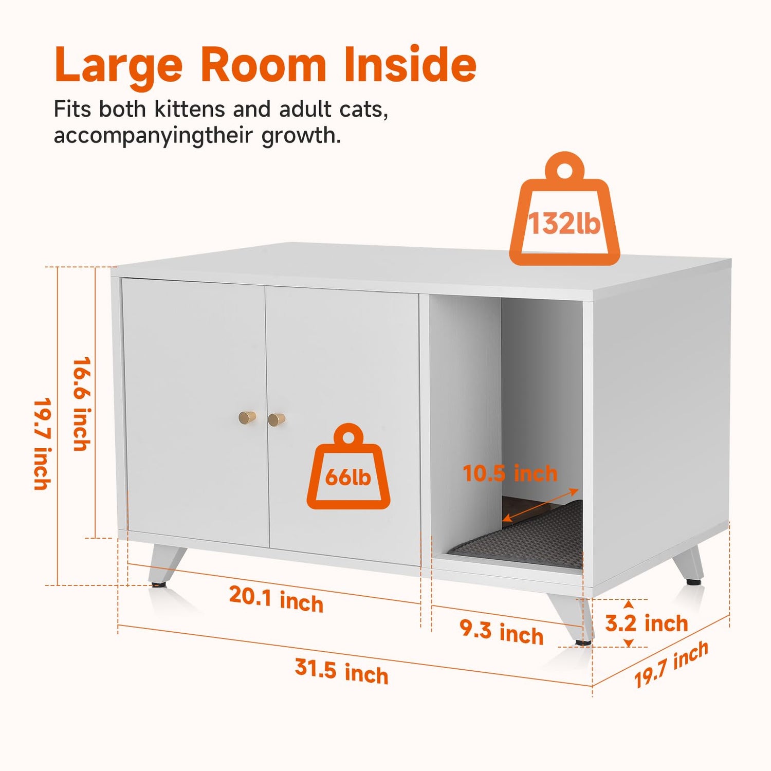 - Fits Most Litter Boxes, Most Spaces: Sized 20.5"W x 18.5"D x 15.7"H, the inner compartment fits most litter boxes; Overall Size:31.5”W x 19.7”D x 19.7”H