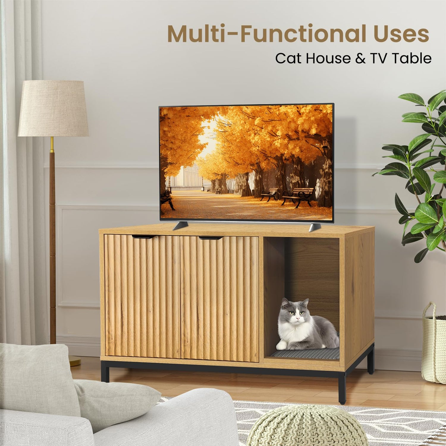 Modern and multifunctional furniture. Featuring a modern and fluted design, this litter box cabinet can double as a sideboard, TV table, or night stand and will enhance your home decor.