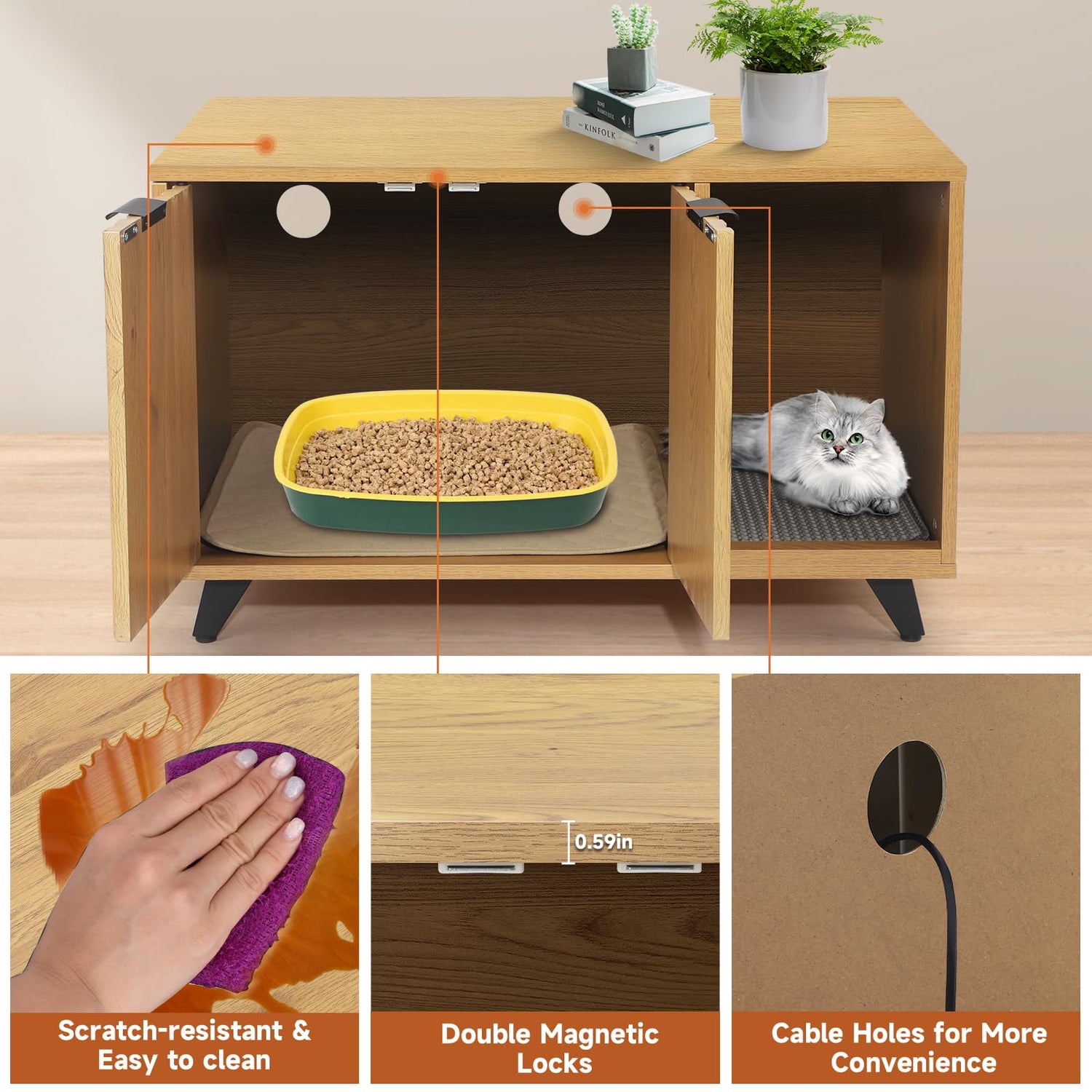 - Multi-Function Cat House: Our hidden litter box enclosure furniture provides a concealed space for your cat's litter box while functioning as a stylish piece of furniture; It keeps the litter box out of sight, maintaining a clean and tidy living space while giving your cat the privacy they deserve