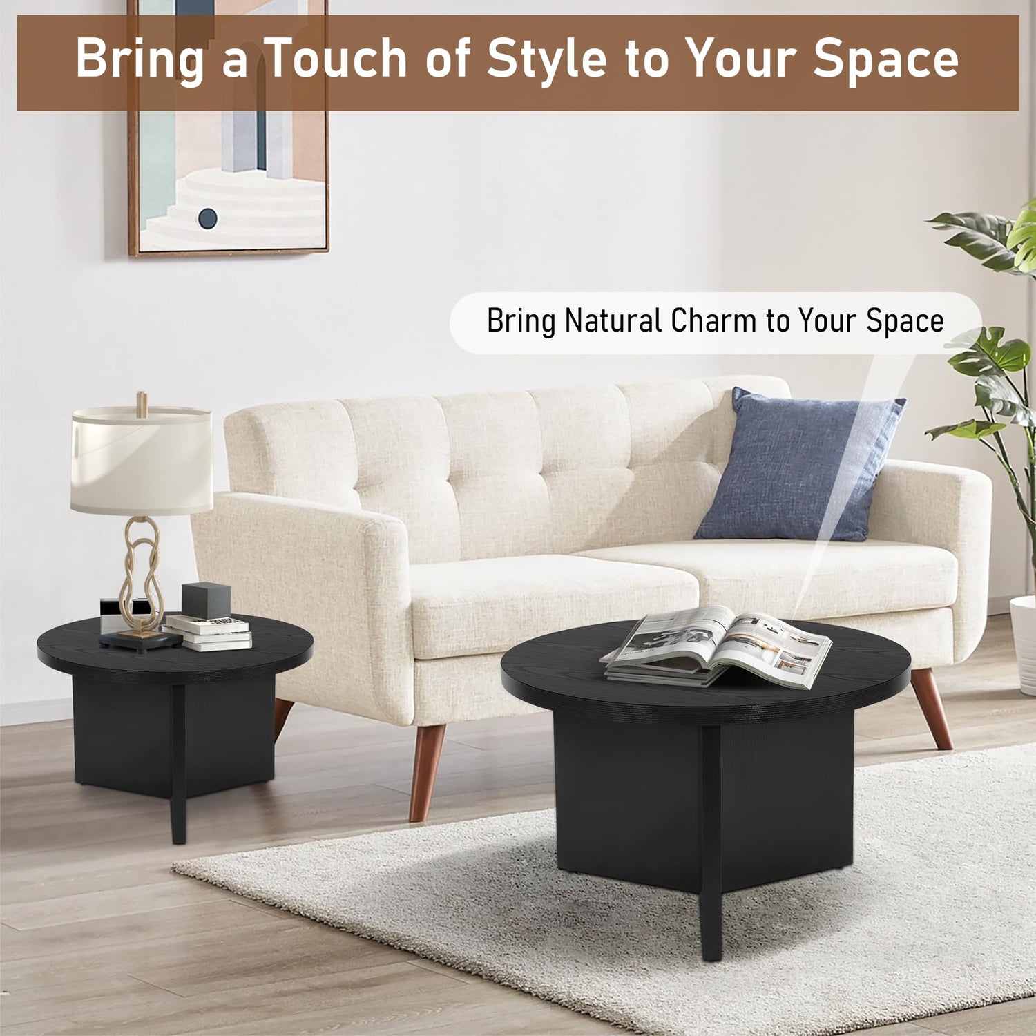 - 2-Piece Round Coffee Table Set: This nesting coffee table set includes two round tables designed to complement each other, giving your living space a modern and cohesive touch. Use them together for a layered look or separately to maximize your room’s functionality and style.