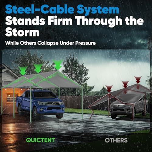 Quictent 10x15 ft Heavy Duty Car Canopy Galvanized Frame Carport Outdoor Party Tent Boat Shelter with 3 Reinforced Steel Cables - Grey