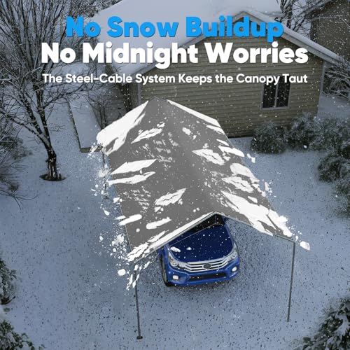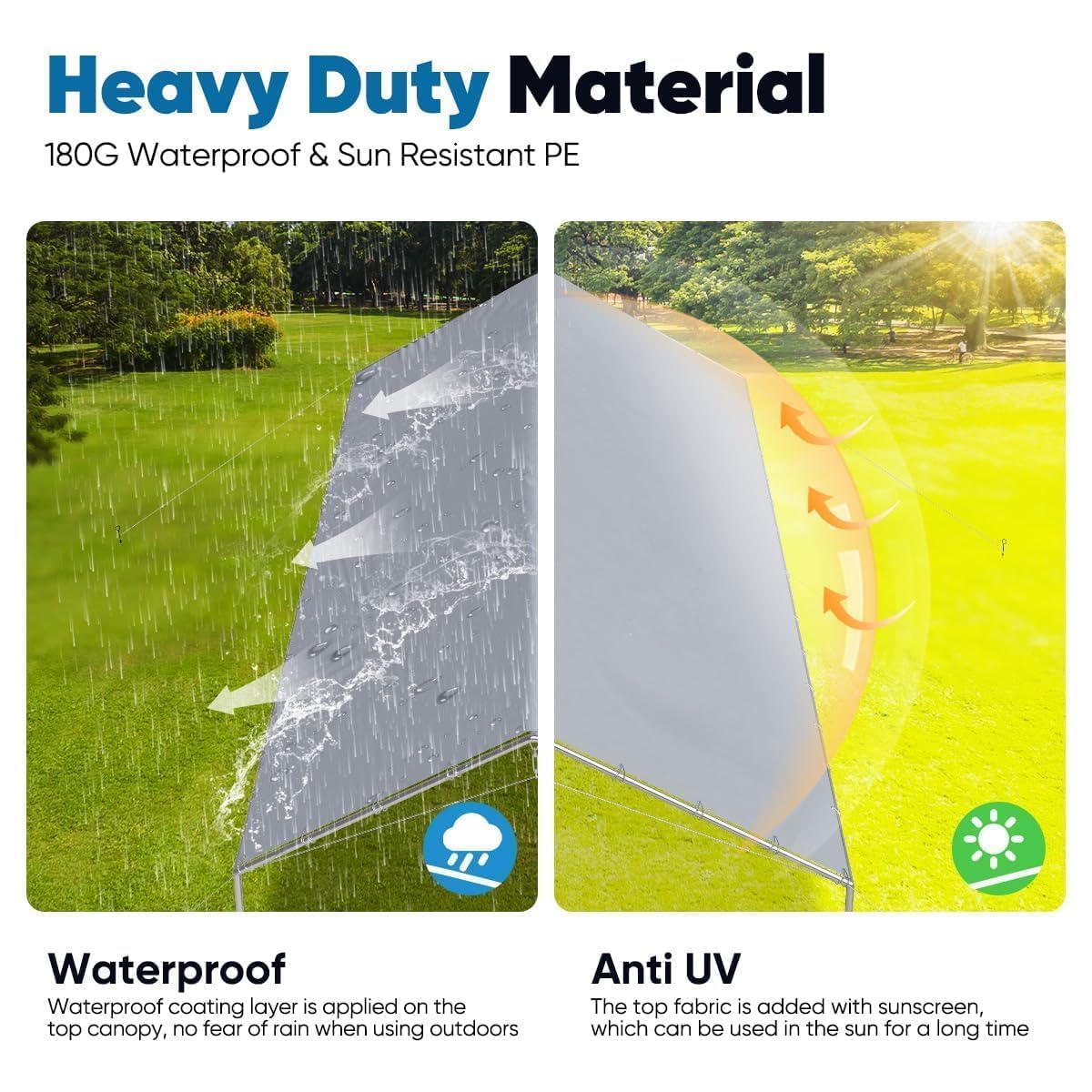 - 【Extra-thick Polyethylene Fabric】:Reinforced PE material is Tear-proof, Waterproof and Anti-UV. Industrial grade Cover Fabric for long lasting durability and protection guaranteed could extended service life of the carport canopy.