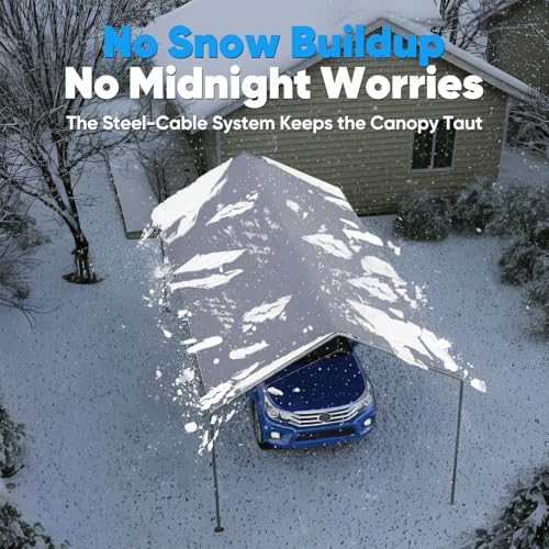 - 【Extra-thick Polyethylene Fabric】:Reinforced PE material is Tear-proof, Waterproof and Anti-UV. Industrial grade Cover Fabric for long lasting durability and protection guaranteed could extended service life of the carport canopy.