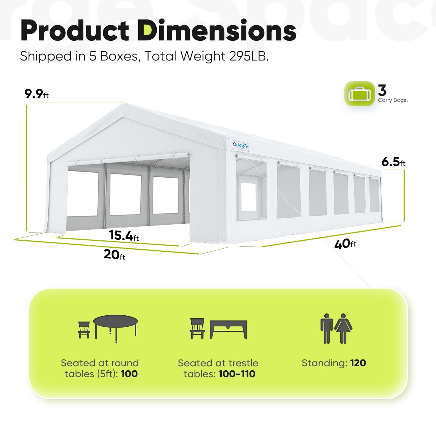 Quictent 20'x40' Heavy Duty Party Tent with Roll-up Ventilated Mesh Windows, Outdoor Event Shelter for Parties Wedding Carports Canopy BBQ