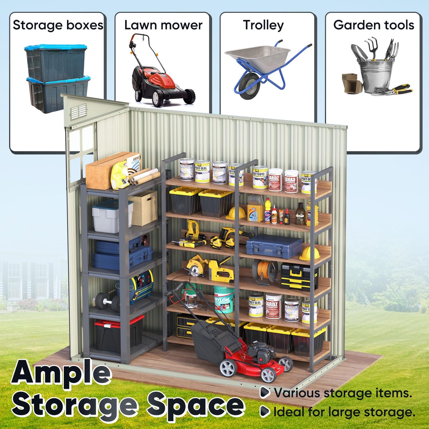 - 【Compact Storage Solution】Maximize your outdoor space with this 5x3FT steel storage shed, perfect for securely storing garden tools, bicycles, and other essentials.