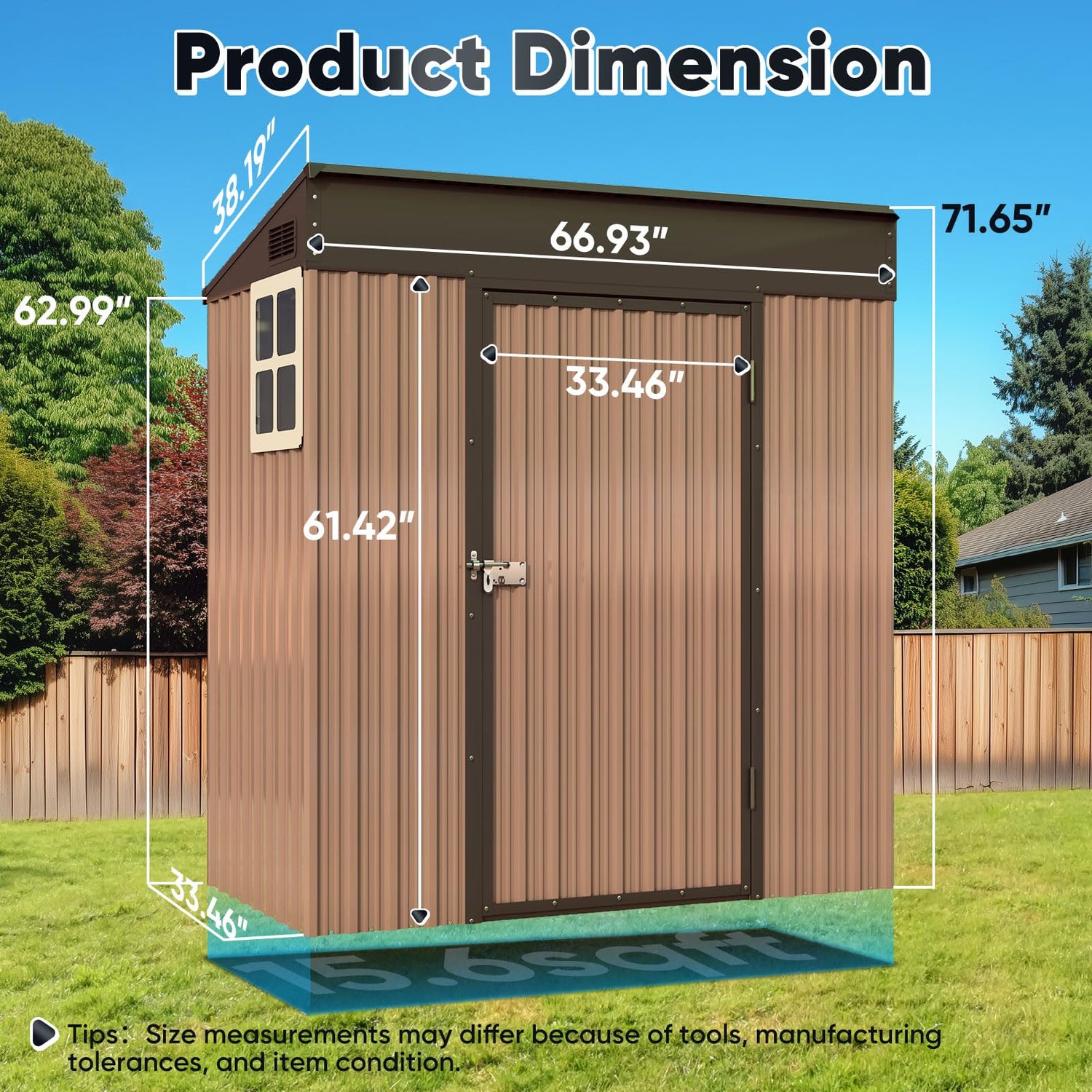 Quictent 5X3 FT Heavy Duty Outdoor Metal Storage Shed,Lockable Garden Shed with Rotating Roof, Waterproof Shed for Bike Storage, Tool Storage, Temporary Storage,Brown(5.5X2.8 FT Base, No Floor)