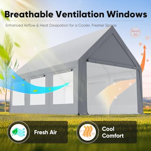 Quictent Heavy Duty 10x20 ft Carport Tent with Ultra-High Peak & Ventilation Windows, Waterproof Outdoor Canopy Shelter for Events, Storage, Parking & Wedding - Gray