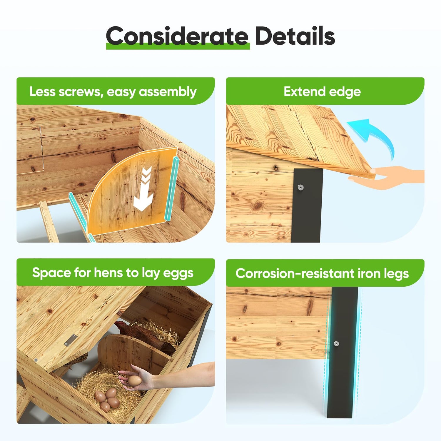 - Wooden Nesting Box: This sturdy wooden nesting box provides a secure and comfortable space for your chickens to lay eggs. It is designed to offer privacy and protection, keeping eggs safe and dry. Easy to clean and maintain, this nesting box is a must-have addition for your chicken coop, promoting hygiene and efficiency. Plus, this valuable upgrade delivers exceptional value without a significant cost increase.