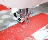 - The Quarter Inch Foot with Guide allows accurate 1/4” seam allowances by lining up the edge of the fabric with the metal guide.