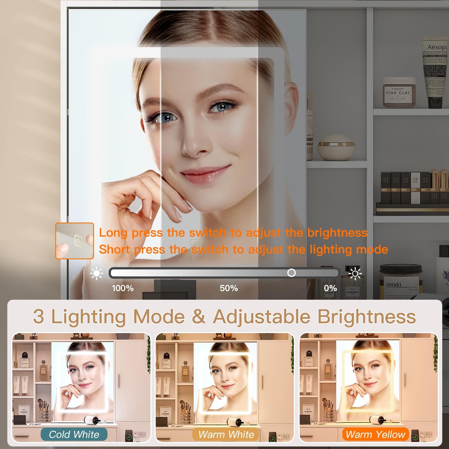 - 3 Modes Light & Adjustable Brightness: The glamorous smart lighted mirror is controlled by a smart sensor switch that easily adjusts the 3 colors modes(warm, natural and cold) by touch and you can adjuste the lightness or darkness according to the desired level of brightness. The free stretch design expands the storage space while allowing you to use the mirror more flexibly, illuminating your beauty from different angles