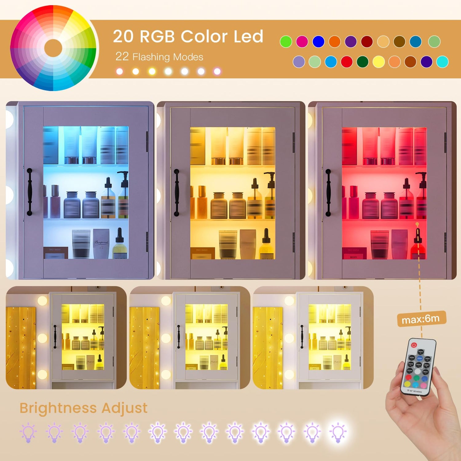 - Vanity with 3 Lighting Modes & Large Mirror: Start your beautiful day with the multifunctional vanity. Equipped with 10 LED lights bulbs, offering warm yellow, warm white, and cold white color modes that meet your different needs. Large and clear mirror provides a nice dressing rooms for you