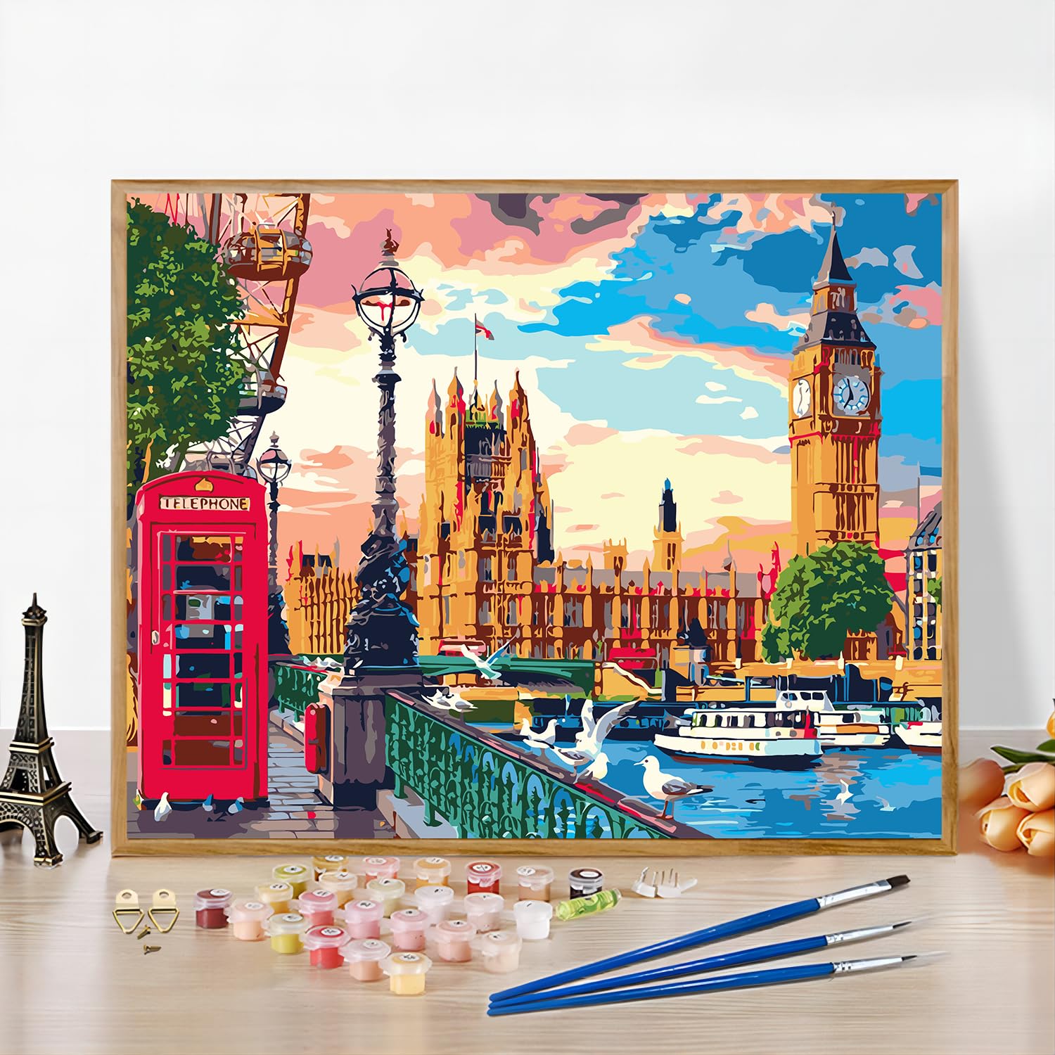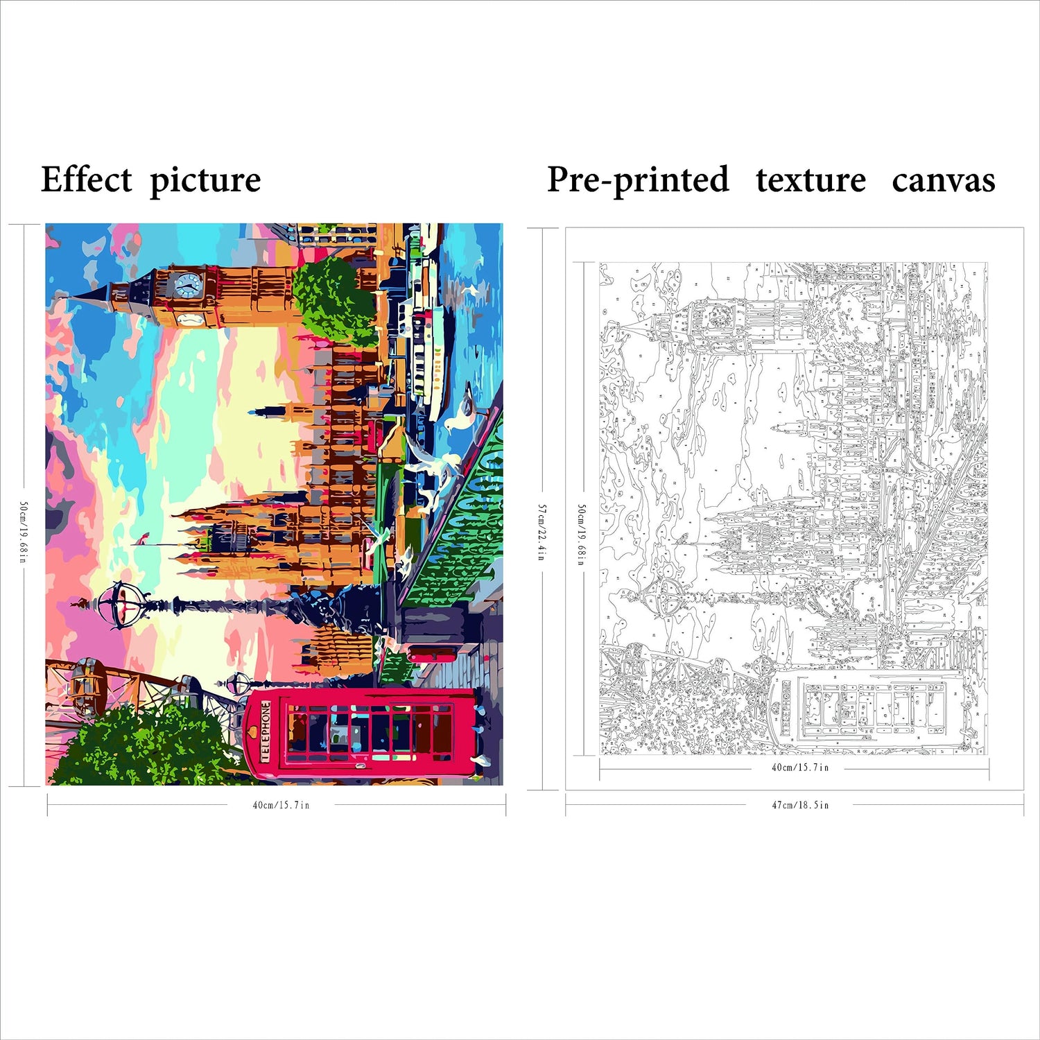 - ❤ 【What Will You Get】:This is a city paint by numbers for Adults,Big Ben paint by numbers canvas,size 16x20 inches (no border),1 set of acrylic paint,3 high-quality Paint brushes,1 wall mount kit,1 color postcard guide,1 copy of numbered canvas paper for reference.