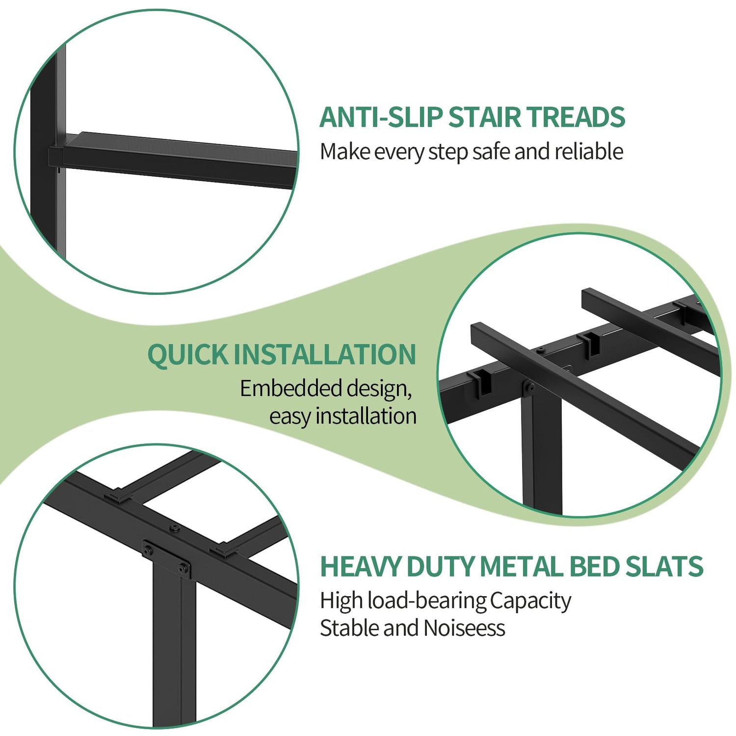 - 【Safe and Stable Bunk Bed Design】Equipped with 13-inch high guardrails and secure twin over twin bunk bed ladders,our metal bunk beds ensure maximum safety for kids and adults.The sturdy bunk bed frame prevents accidental falls,making it ideal for children’s bunk beds,teen bunk beds,or adult bunk beds
