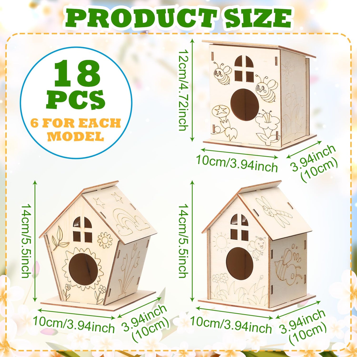 - DIY Fun: our kit includes 3 different styles of wooden birdhouses with 6 pieces each, so you can choose your favorite color to draw the lines on; The above pattern is very lively and interesting, and the included drawing pen allows endless customization options