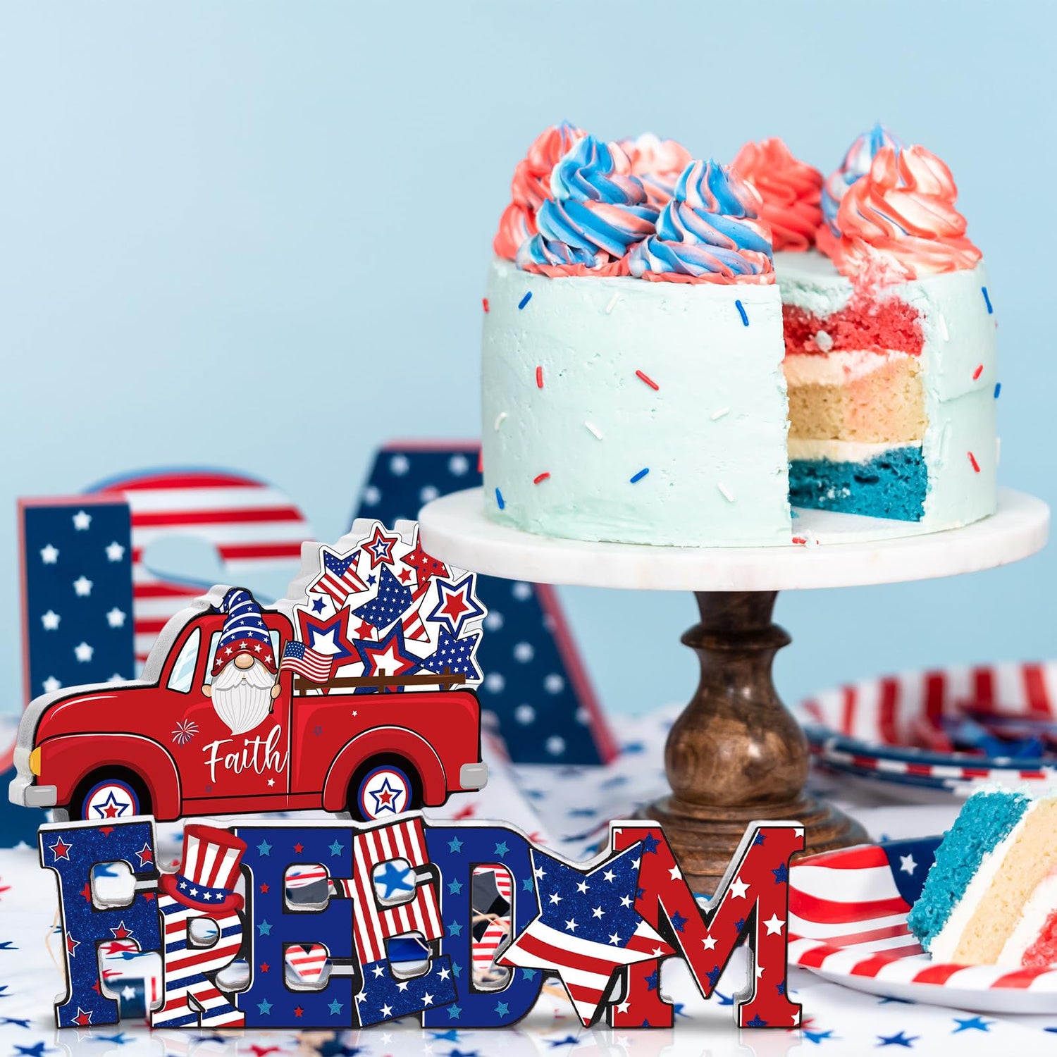 - Patriotic Table Decorations: there are 6 pieces of wooden Memorial Day table centerpieces signs which are 2 pieces of gnome table signs, 2 pieces of America star table decor, 1 piece of truck table centerpiece and 1 piece of freedom letter table decoration; Variety of styles and patriotic elements design will easily make your table full of a patriotic atmosphere