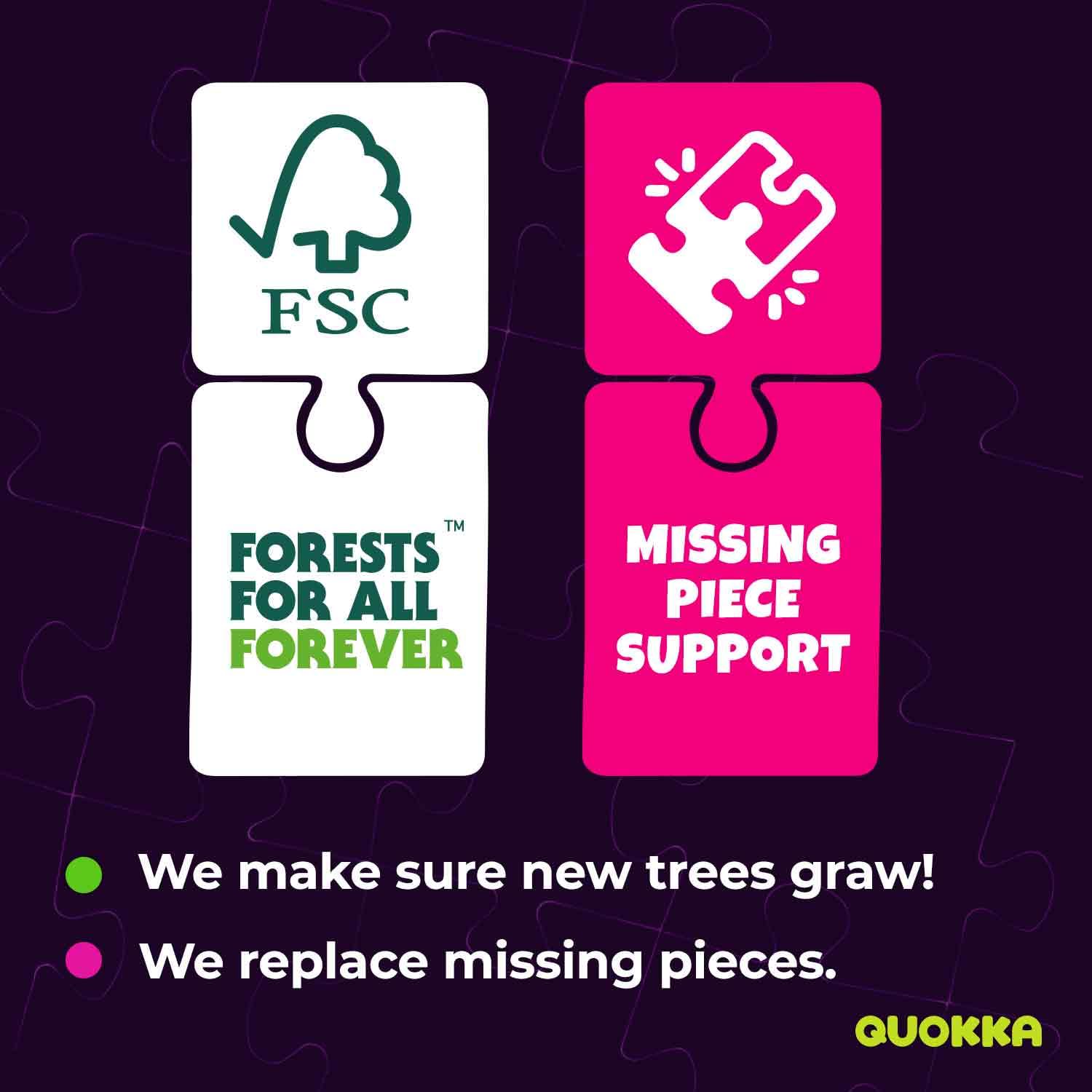 - TM QUOKKA PUZZLES TOOK IT FURTHER: We use only FSC-certified materials, ensuring sustainable practices and supporting new tree growth; our commitment to the environment means you can enjoy puzzles with a purpose, combining fun and responsibility