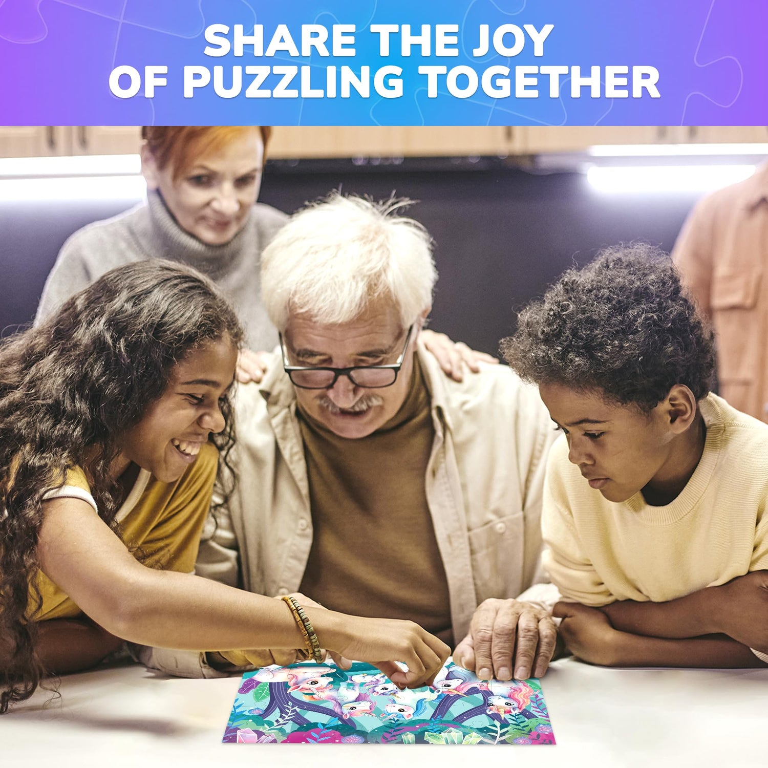 - COLORFUL PUZZLE GAME: our big jigsaw puzzles have a bright design and vibrant colors; Childrens with interest learn about Unicorns with our kids toys age 4-5; Each piece has a unique shape