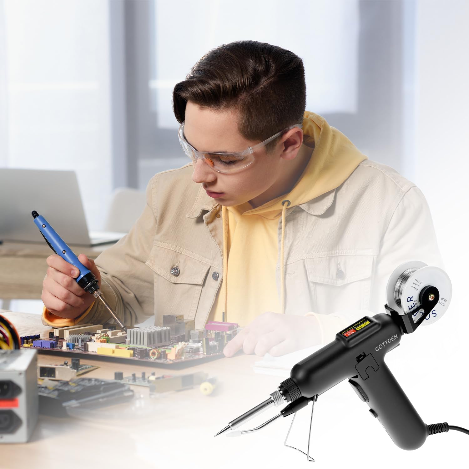 - Complete Accessory Set: Comes with essential tools including iron tips, solder wire, a desoldering pump, and tweezers, ensuring a seamless soldering experience.