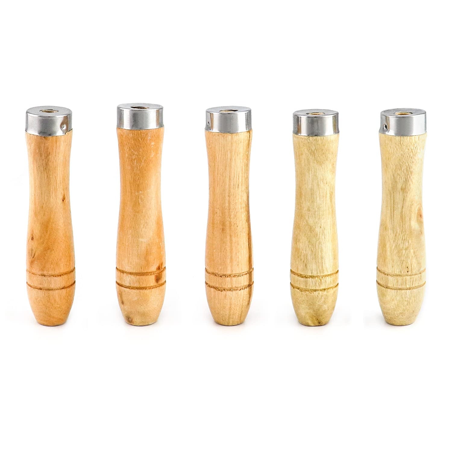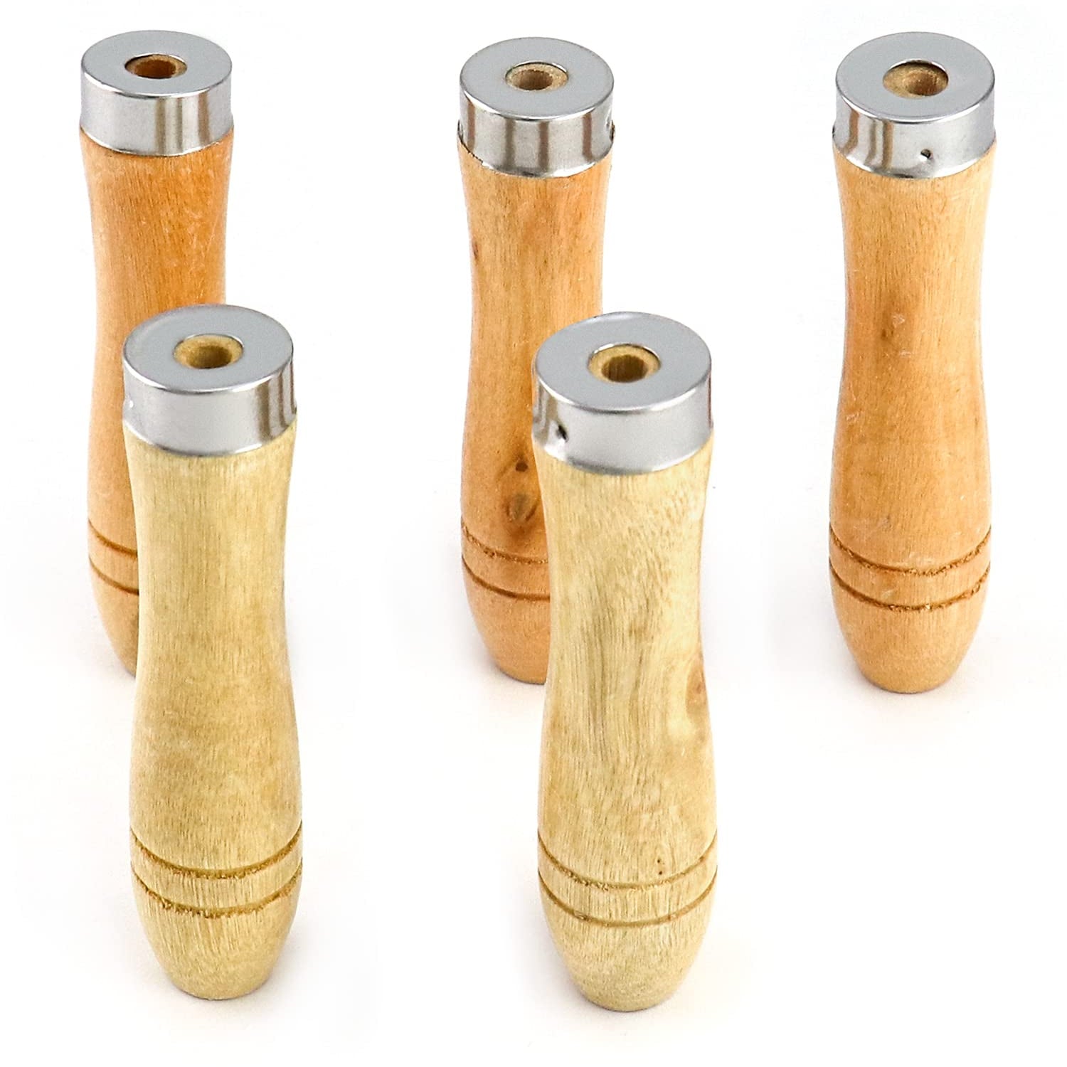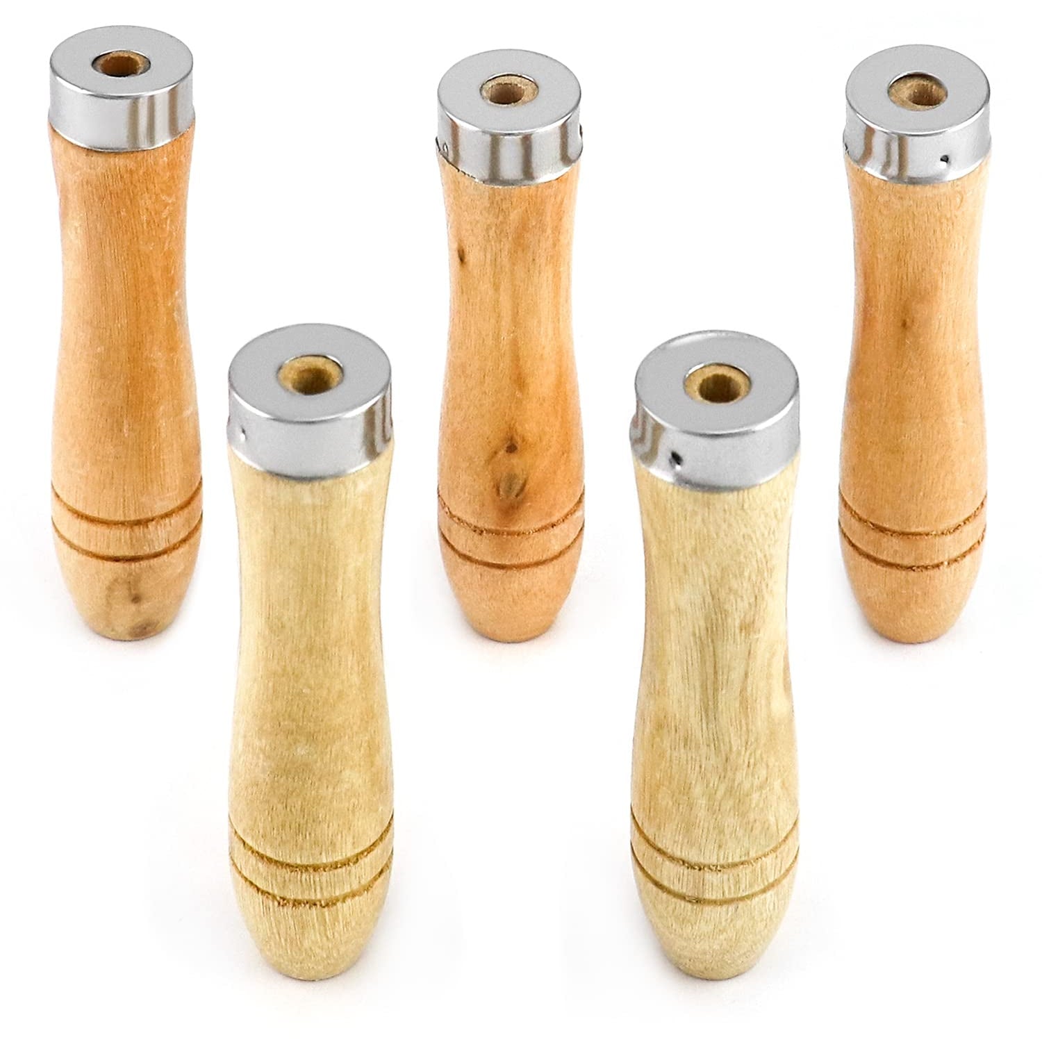 QWORK Wooden File Handle with Strong Metal Collars, 5 Pack Ergonomic Handle Easy Installation File Cutting Tool Craft for 4'' - 7'' Metal File, Wood File, Screwdriver, Hand Drill