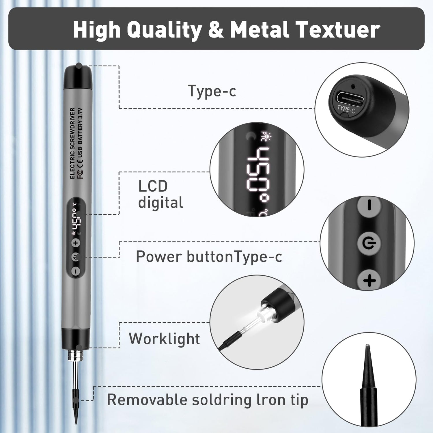 Qyvorae Mini Cordless Soldering Iron Kit, USB Rechargeable Portable Cordless Soldering Iron, LCD Digital Adjustable Temperature Soldering Gun Thermostatic Soldering Kit for Home Appliance Repair, DIY
