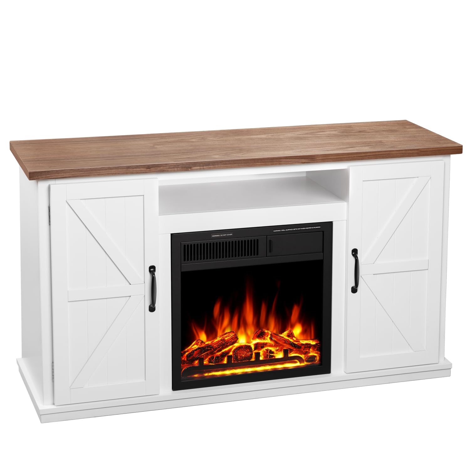 - Perfect Home Deco: The flame and heating function can be used separately so it is able for our product to be a decorative freestanding fireplace wood mantel.With its beautifully crafted mantel, breathtaking flame effects and practical heat output, this mantel fireplace will truly become the focal point of your room!You can place the TV above the fireplace rack, making it a fireplace TV Stand, or you can add your family photos, fresh flowers, garland,candles on the wood mantel.