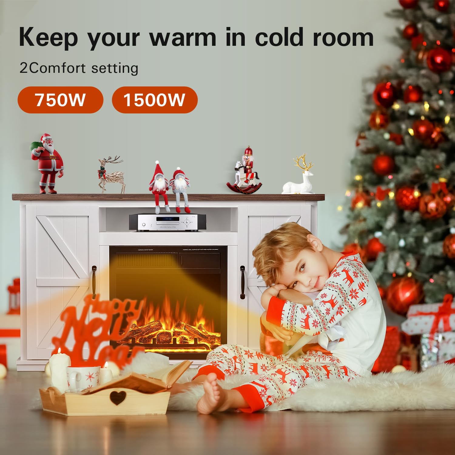 - 4-In-1Multifunctional: Combine a mantel with a electric fireplace.It is not only an electric fireplace,but also a TV stand with a fireplace mantel,which can be used as an indoor heater and a furniture decoration.The 43'' electric fireplace can accommodate TVs up to 60'',providing a comfortable viewing experience while maintaining TV stability.The Fireplace mantel with a remote control,so you can easily adjust the flame effect and the heat of the unit from virtually anywhere in your room.