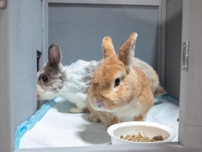 - 【Spacious Dual-Level Design】2 connected tiers with a ramp let bunnies hop and nap freely - perfect for 1-3 Mini Lops, Holland Lop, Dwarf Lop, Guinea Pigs, or even fluffy chicks. Overall size: 39"L x 24"W x 37"H