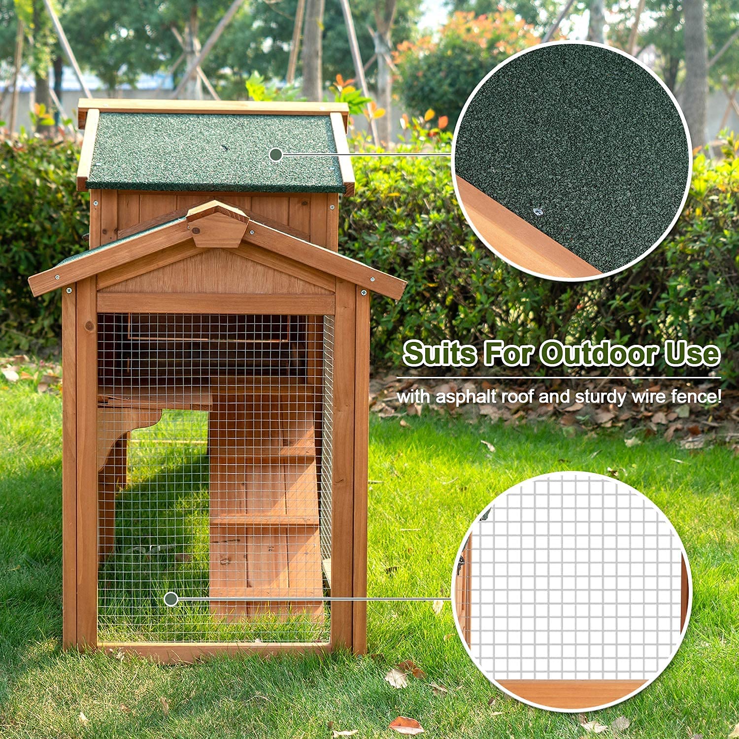 - â ăDurable & StylishăThis attractive rabbit hutch which integrate perfectly minimalist looking and stability, perfectly blend in with your beautiful yard. Waterproof-treated fir wall and hard metal fence to ensure longevity & durability for outdoor use. The asphalt roof is UV resistant, offer rabbits a shelter to avoid blazing sun or heavy rain.
