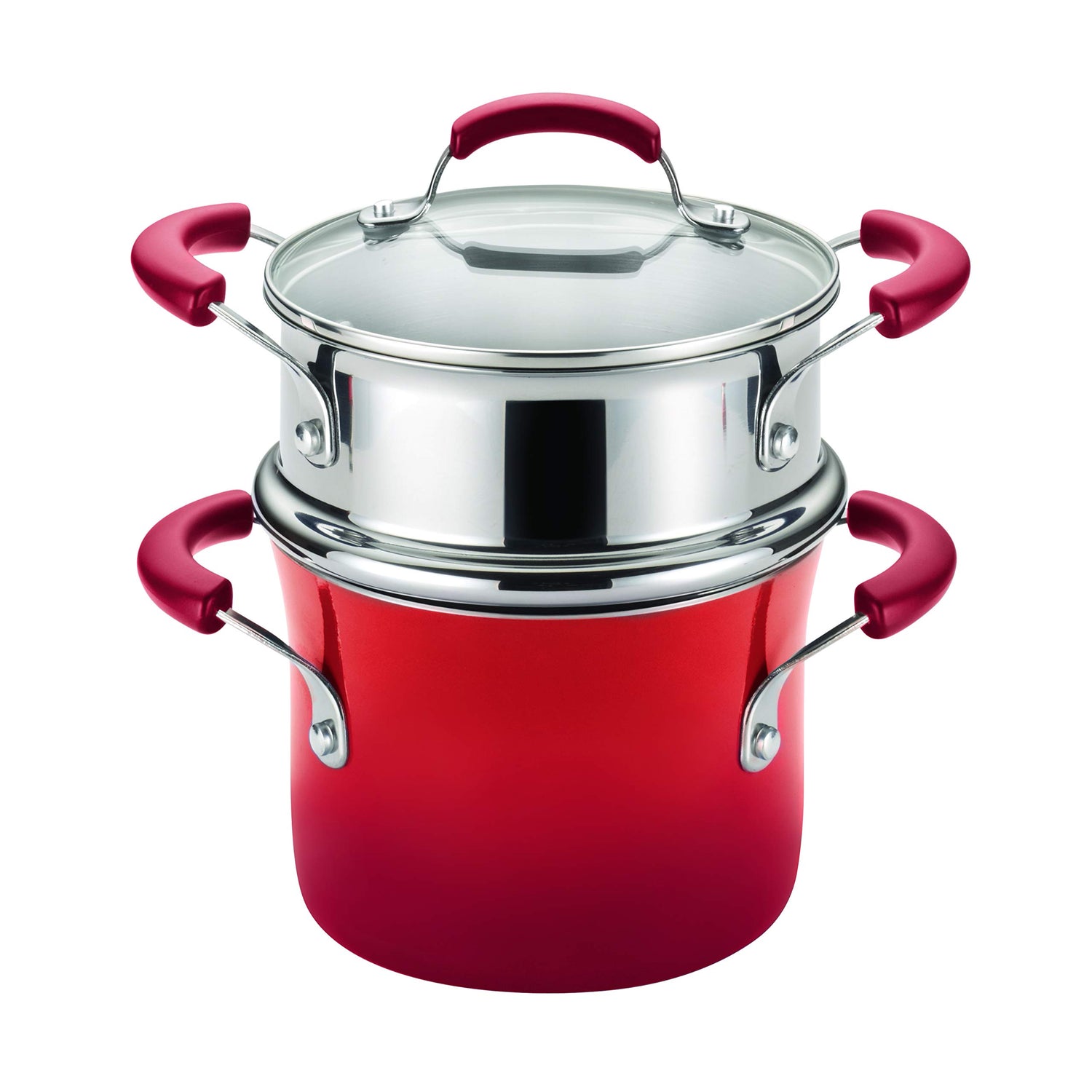 Rachael Ray Brights Sauce Pot/Saucepot with Steamer Insert, 3 Quart, Two-Tone Red