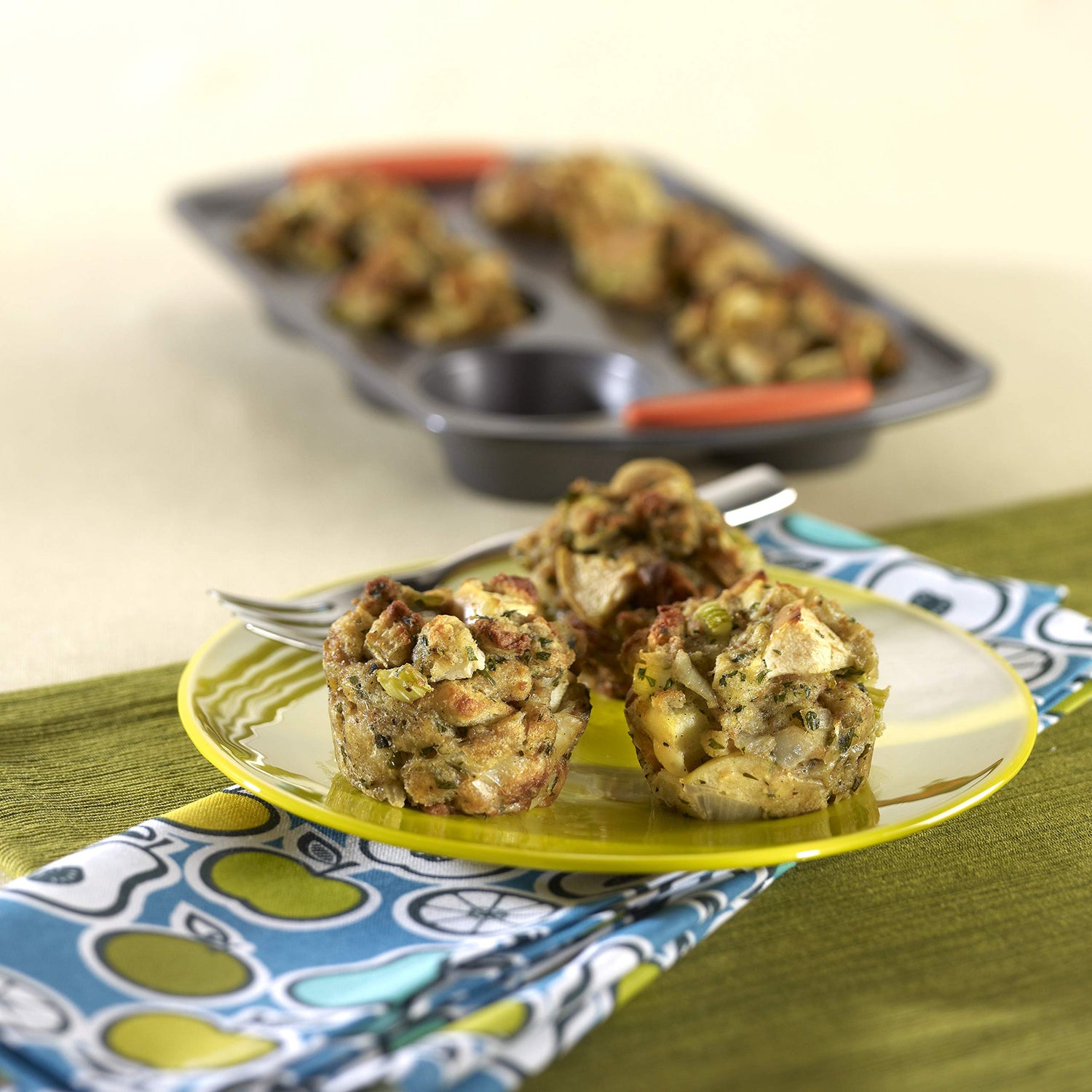 Details: 54078 Features: -Extra wide handles for a confident grasp. -Long lasting nonstick aluminum, inside and out. -Material: Aluminum with nonstick coating. -Comfortable silicone grips add a splash of color and a whole lot of fun. -Quality Assurance Guarantee. -Yum-O Nonstick collection. Product Type: -Muffin Pan. Material: -Steel. Non-Stick Surface: -Yes. Capacity: -6 Cups. Dimensions: Overall Height - Top to Bottom: -1.5". Overall Width - Side to Side: -7.25". Overall Depth - Front to Back: -12.5". Overall Product Weight: -0.8 lbs.