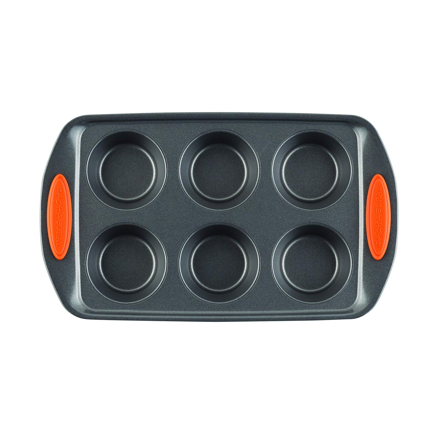Rachael Ray Yum -o! Nonstick Bakeware 6-Cup Muffin Tin With Grips / Nonstick 6-Cup Cupcake Tin With Grips - 6 Cup, Gray